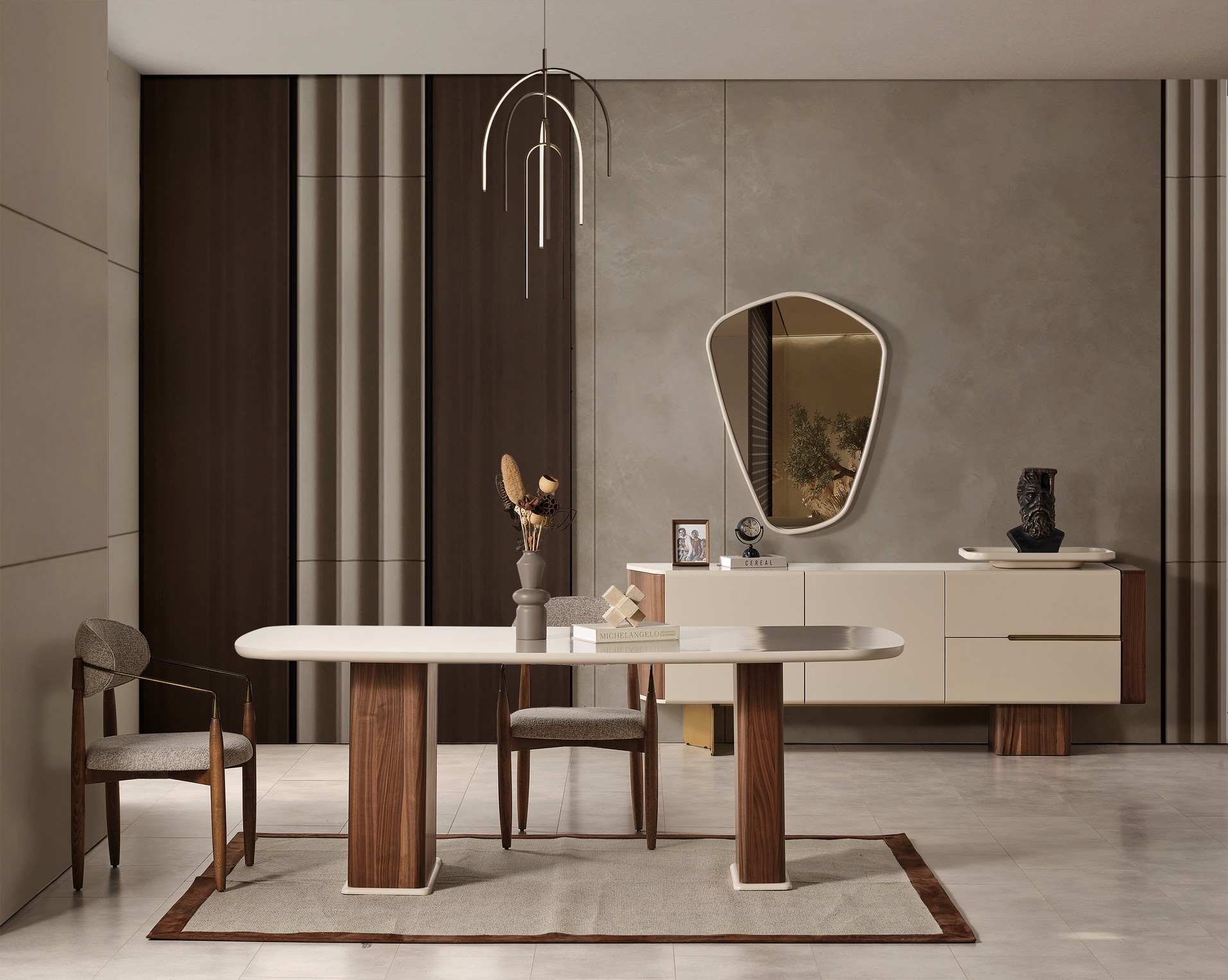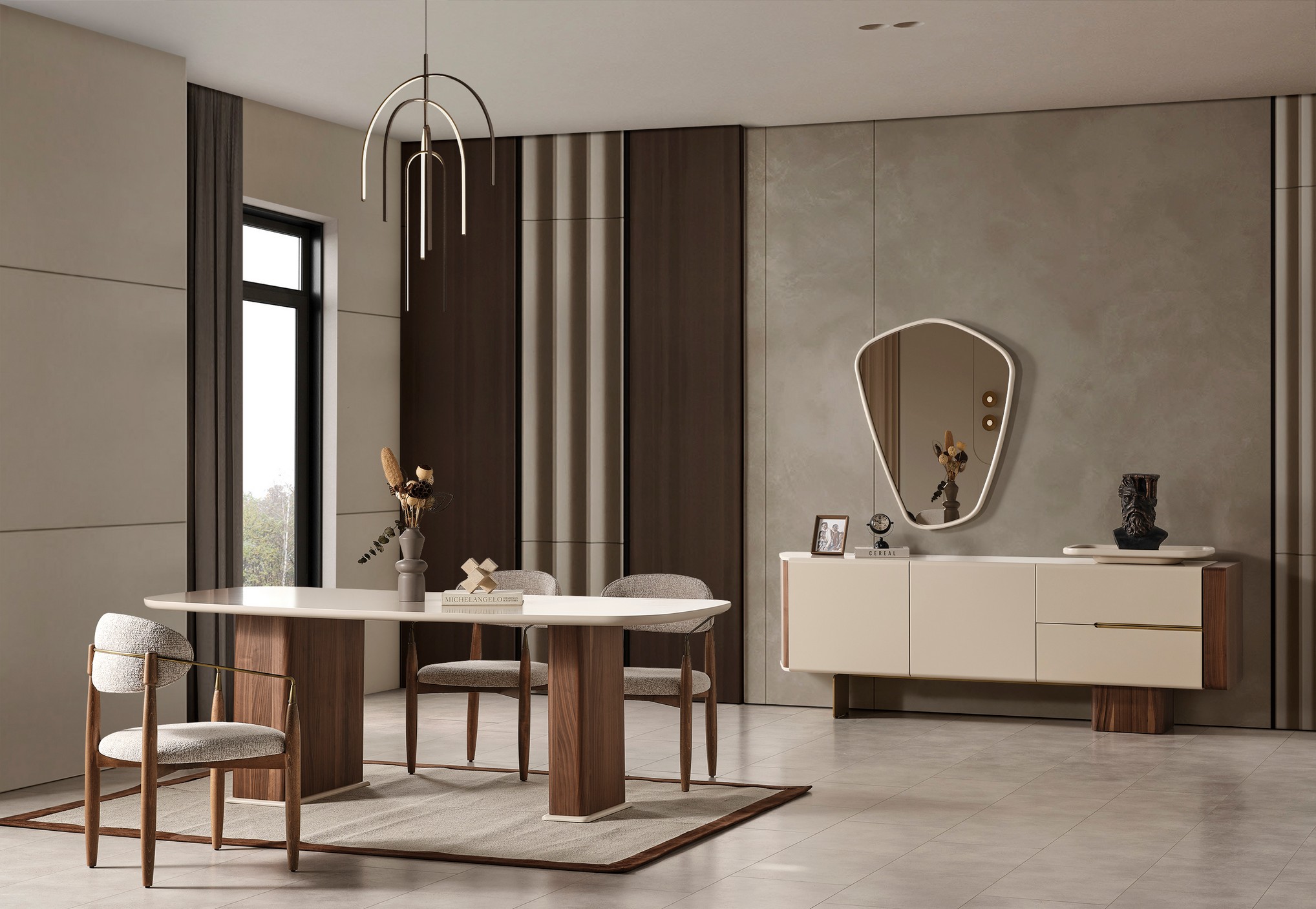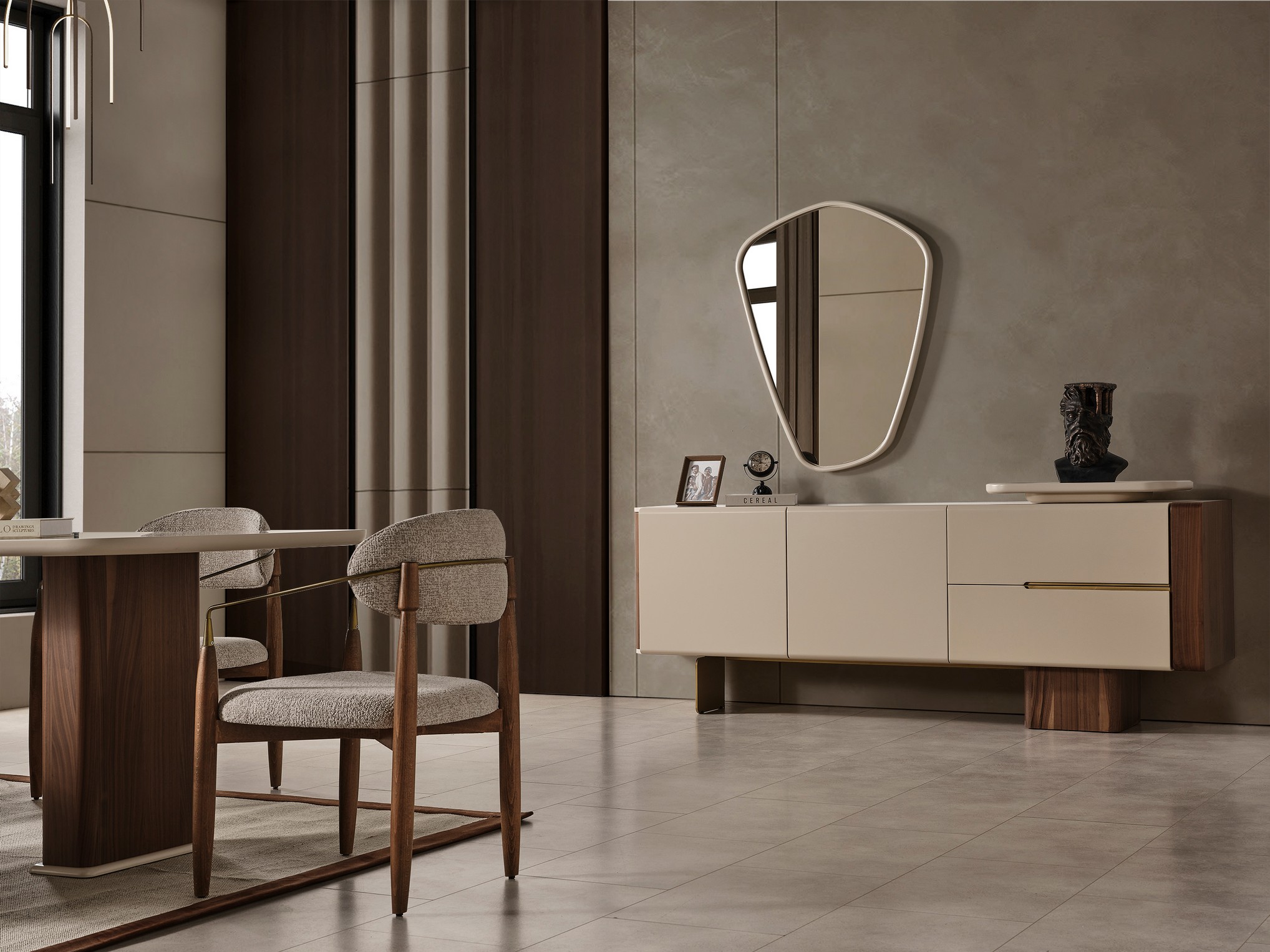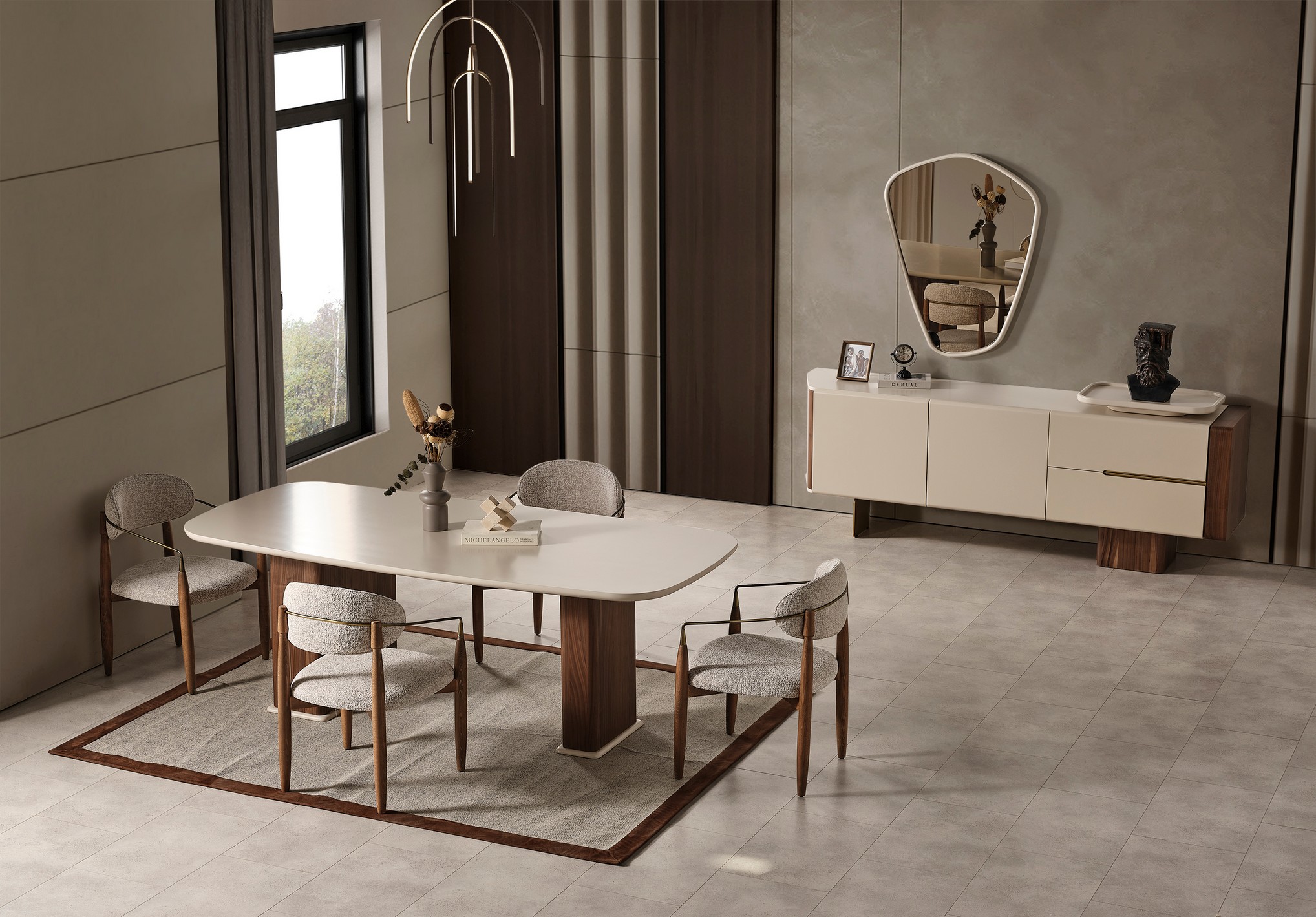 Milano Ceviz Yemek Odası, sıcak ceviz tonları ve zarif çizgileriyle yemek alanınıza sofistike bir dokunuş katar. Fonksiyonel tasarımı, hem günlük kullanım hem de özel davetler için büyük rahatlık sağlar. Mekâna kattığı doğal ve samimi atmosfer, misafirleriniz üzerinde olumlu bir etki bırakır. Estetik ve kullanışlılığı bir arada sunan şık bir seçimdir.