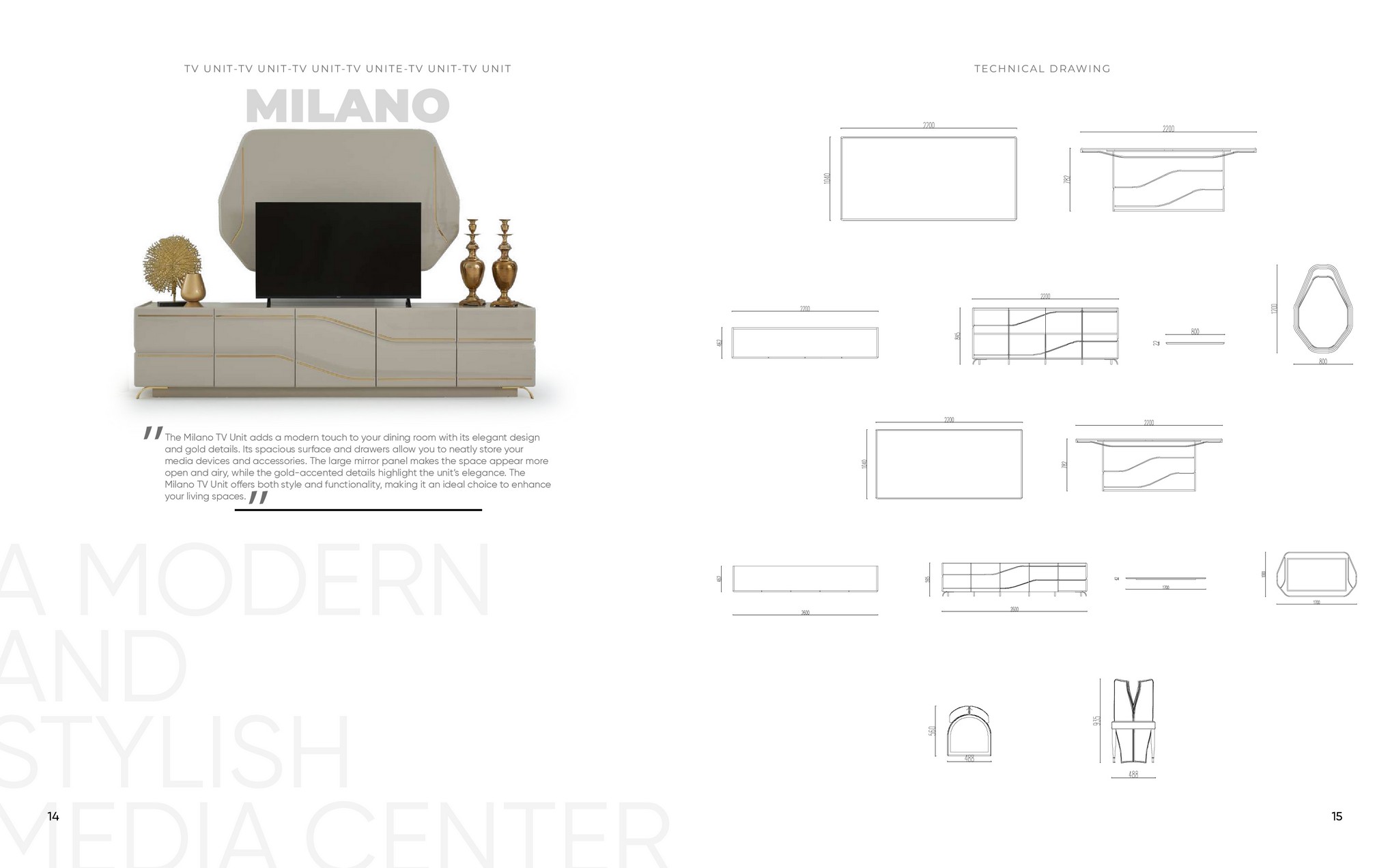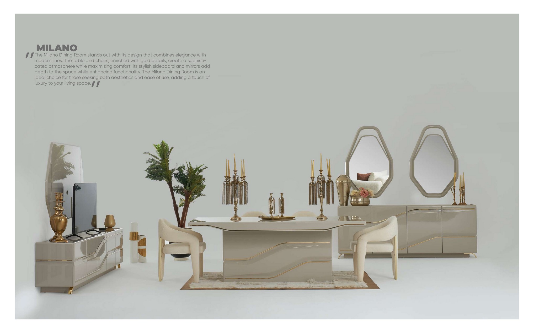 Milano Yemek Odası, modern çizgileri zarafetle birleştirerek evinize sofistike bir atmosfer kazandırır. İnce işçiliği ve şık tasarımıyla hem günlük kullanıma hem de özel davetlere mükemmel uyum sağlar. Ferah ve estetik görünümüyle yaşam alanınıza çağdaş bir dokunuş ekler.