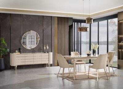 Mostar Açık Ceviz Yemek Odası, sıcak ceviz tonları ve modern tasarımıyla sofralarınıza doğal bir şıklık katar. Zarif detayları ve fonksiyonel yapısı, hem günlük yemeklerde hem de özel davetlerde konfor sağlar. Mekânınıza davetkar ve ferah bir atmosfer kazandırır. Her buluşmayı unutulmaz bir deneyime dönüştüren estetik bir tercih sunar.