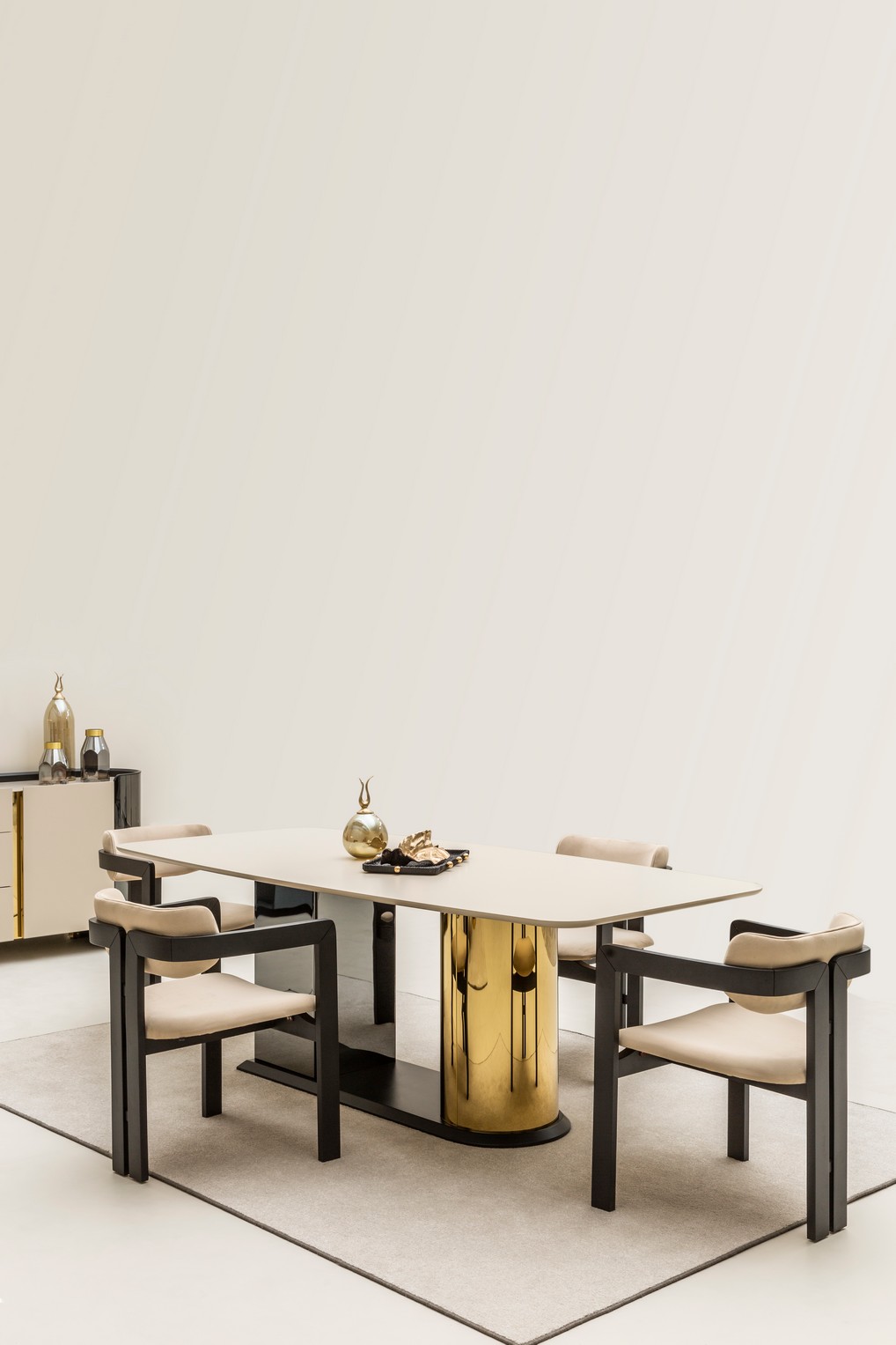Octo Yemek Odası, özgün tasarım anlayışını modern çizgilerle birleştirerek mekâna dikkat çekici bir karakter kazandırır. Geometrik detayların zarif dokunuşlarla buluştuğu yapısı, yemek alanınıza estetik bir dinamizm katar. Hem şık hem de kullanışlı yapısıyla keyifli sofraların vazgeçilmezlerinden olur.