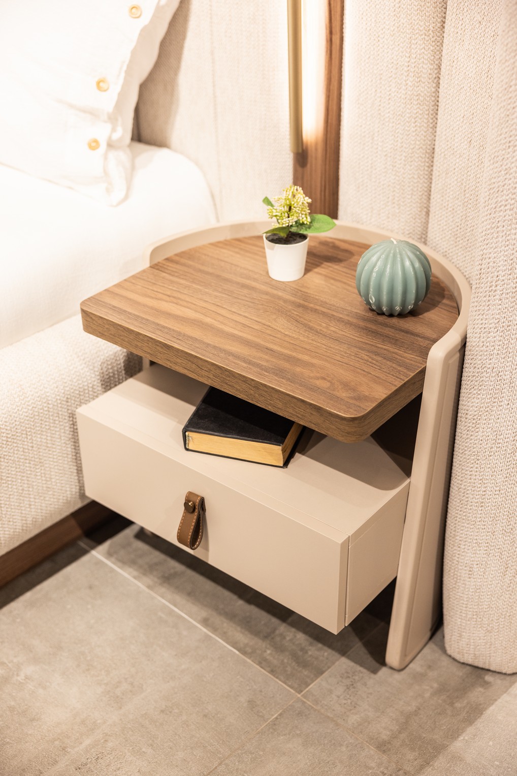 Bodrum Yatak Odası, Ege esintilerinden ilham alan tasarımıyla ferah ve huzurlu bir atmosfer sunar. Açık renk tonları ve doğal detayları, odanıza aydınlık ve rahatlatıcı bir görünüm kazandırır. Fonksiyonel depolama alanları ve kaliteli malzemeleriyle konforlu bir kullanım sağlar. Tatil havasını evine taşımak isteyenler için ideal bir yatak odası seçeneğidir.