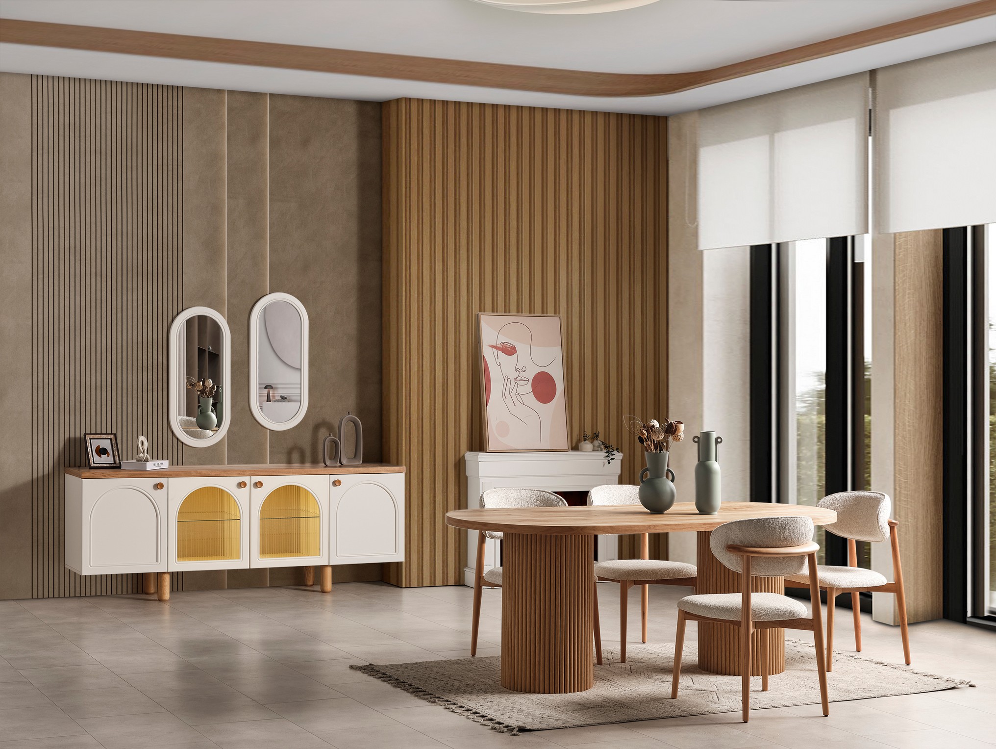 Pera Yemek Odası, zarif tasarımı ve ince işçiliğiyle sofralarınıza sofistike bir hava katar. Fonksiyonel ve konforlu yapısıyla günlük kullanımda da ideal bir seçenek sunar. Modern çizgileriyle mekânınıza ferah ve şık bir görünüm kazandırır. Her daveti özel kılacak estetik bir tercih.