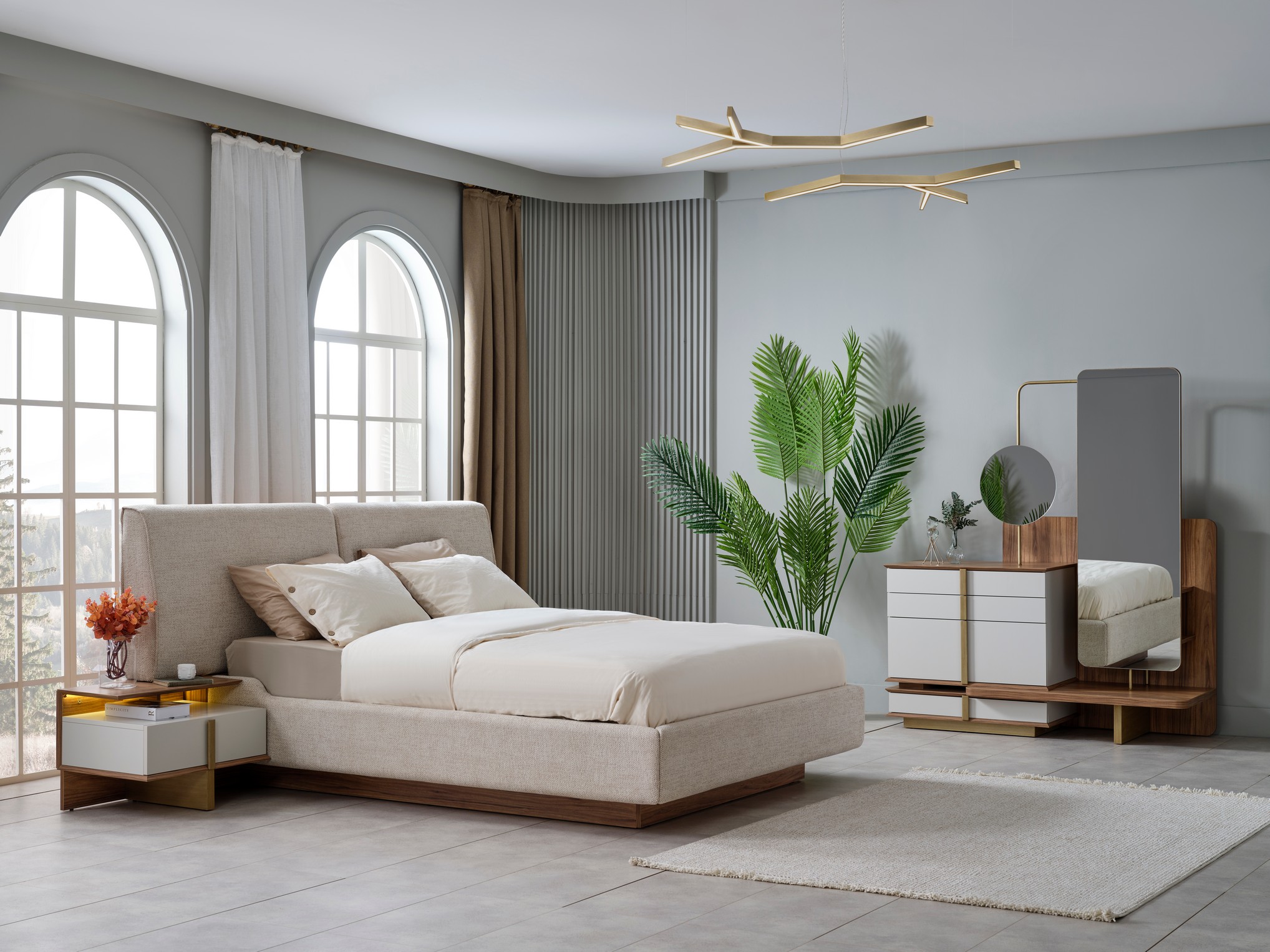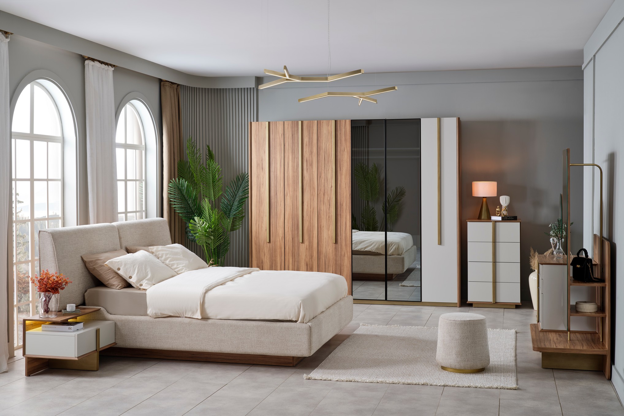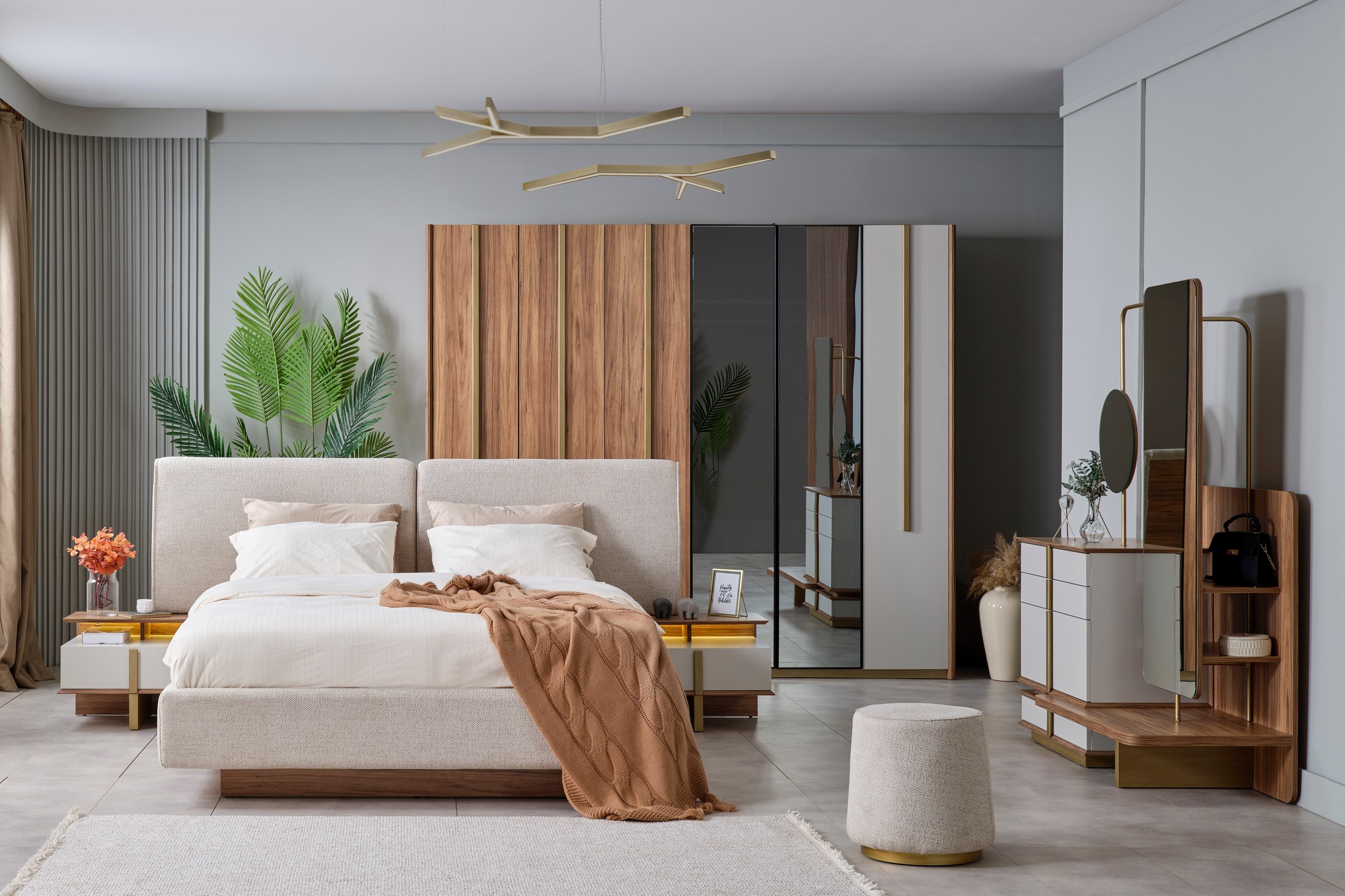 Bonita Yatak Odası, modern tasarımı sıcak ve zarif detaylarla buluşturarak davetkâr bir atmosfer oluşturur. Yumuşak renk geçişleri ve akıcı çizgileri, odanıza ferah ve estetik bir görünüm kazandırır. Fonksiyonel dolap ve şık tamamlayıcı parçalarıyla hem konfor hem de kullanım kolaylığı sunar. Rahatlığı ve şıklığı bir arada isteyenler için ideal bir tercihtir.