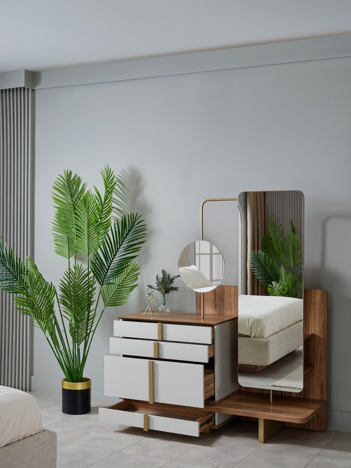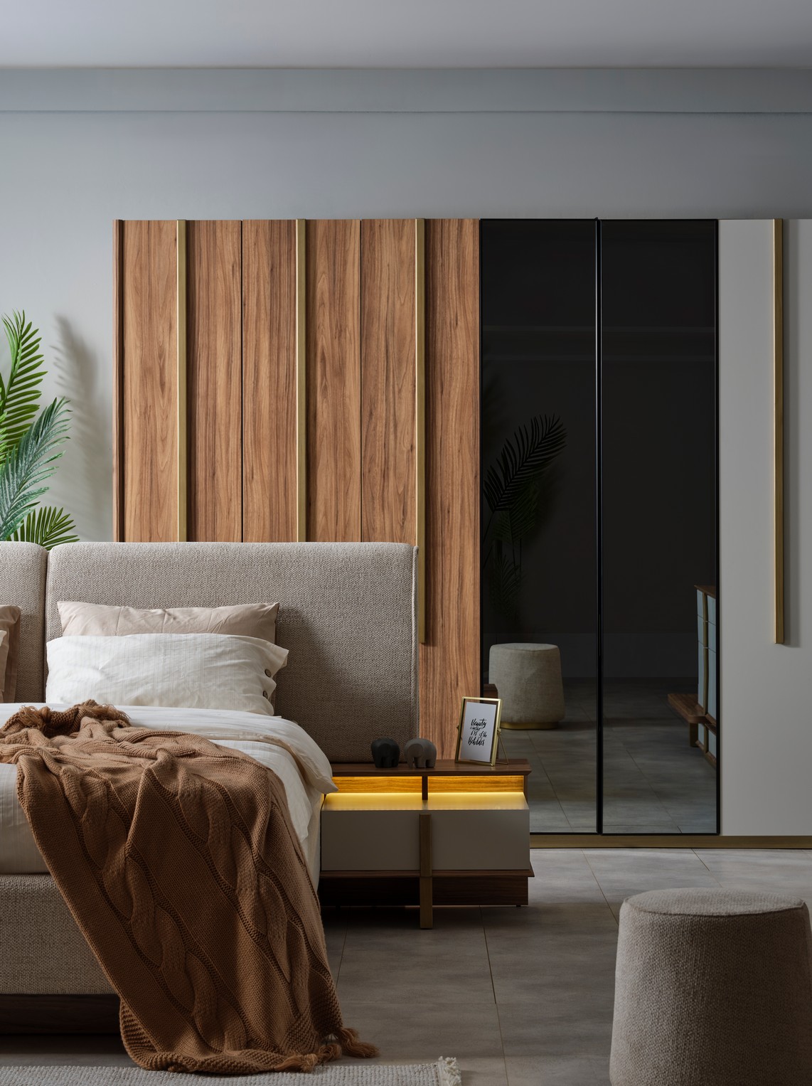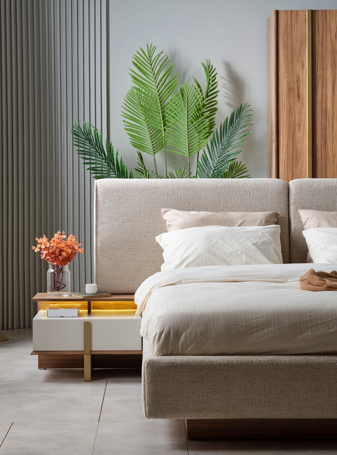 Bonita Yatak Odası, modern tasarımı sıcak ve zarif detaylarla buluşturarak davetkâr bir atmosfer oluşturur. Yumuşak renk geçişleri ve akıcı çizgileri, odanıza ferah ve estetik bir görünüm kazandırır. Fonksiyonel dolap ve şık tamamlayıcı parçalarıyla hem konfor hem de kullanım kolaylığı sunar. Rahatlığı ve şıklığı bir arada isteyenler için ideal bir tercihtir.