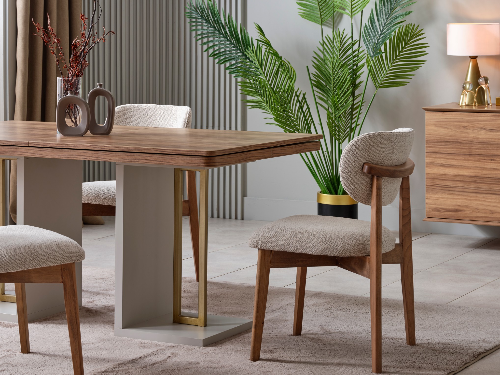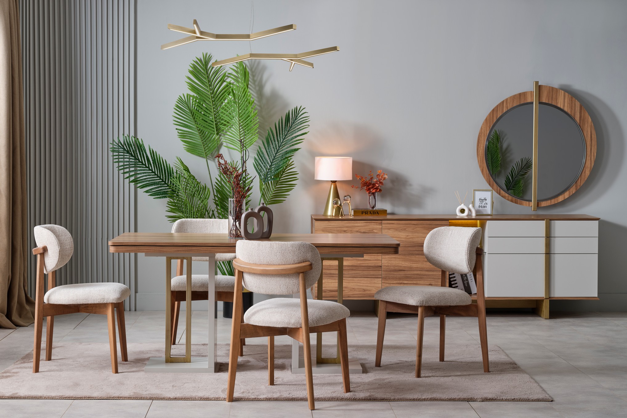 Prada Yemek Odası, sofistike tasarımıyla evinize zarif bir dokunuş getiriyor. Modern çizgiler ve özenli detaylar, sofralarınızı daha şık ve davetkar kılıyor. Konforlu kullanımıyla her yemek anını keyifli hale getiriyor. Misafirleriniz burada kendilerini özel hissedecek ve buluşmalarınız unutulmaz anılara dönüşecek. Prada ile yemek odanız, evinizin en şık ve stil sahibi köşesi oluyor.