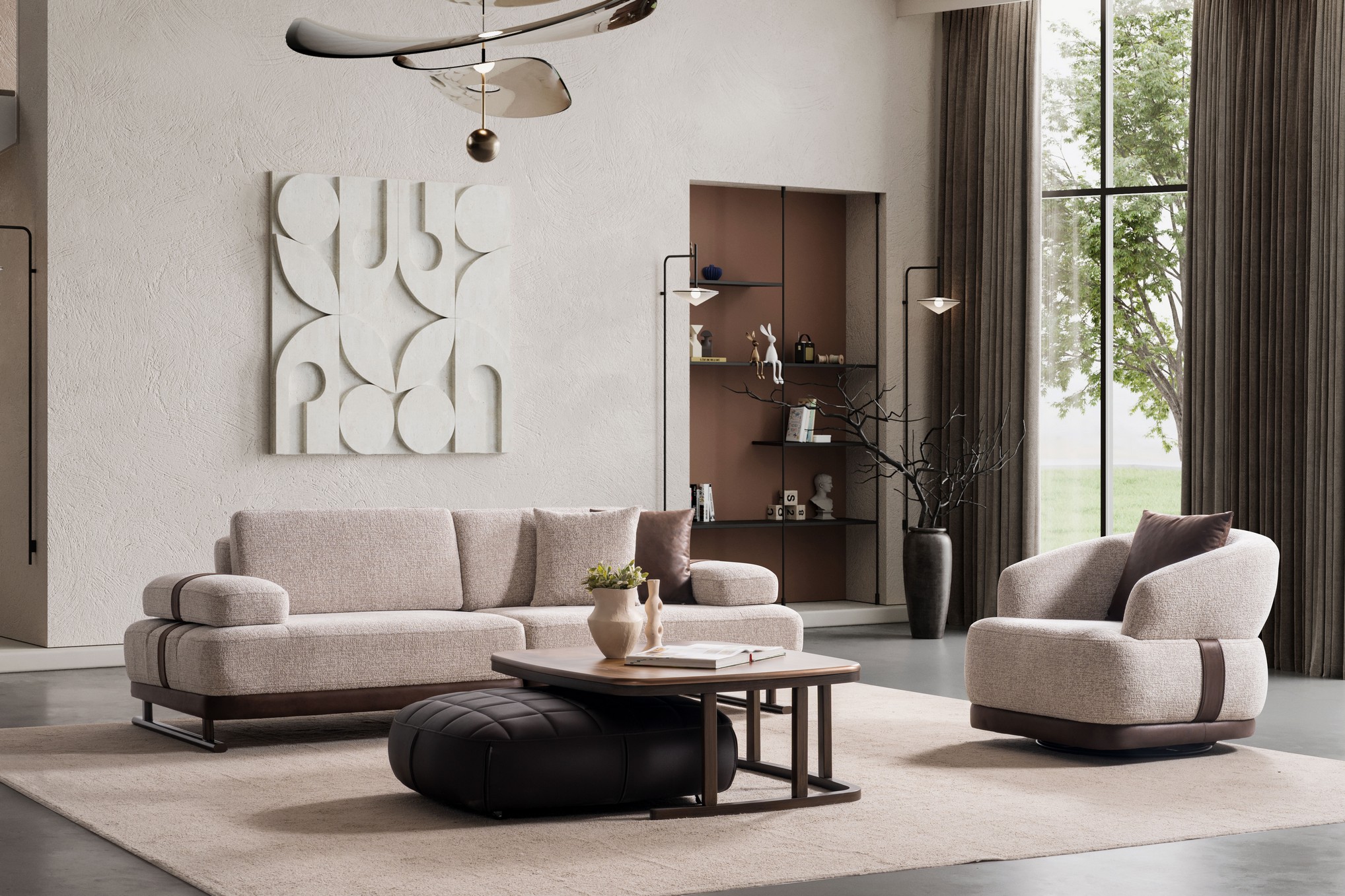 Yuen Koltuk Takımı, modern tasarımın dengeli çizgilerini konforla buluşturarak oturma alanınıza huzurlu bir şıklık kazandırır. Ergonomik minderleri ve yumuşak dokusuyla uzun süreli kullanımda üstün rahatlık sağlar. Uyumlu renk seçenekleri ve sade ama etkileyici detayları, yaşam alanınıza estetik ve davetkâr bir atmosfer sunar. Hem modern stil hem de konfor arayanlar için ideal bir koltuk takımı tercihidir.