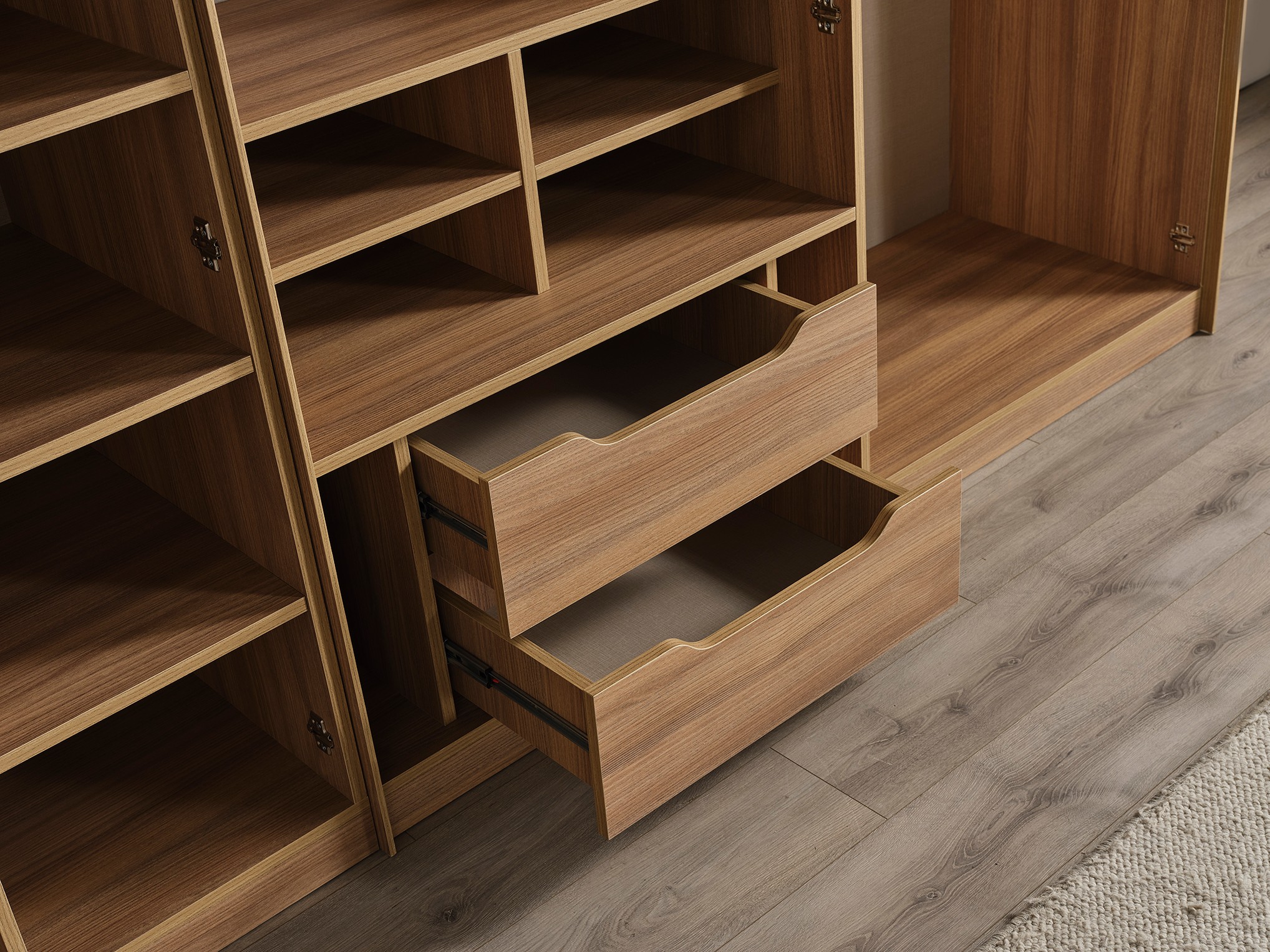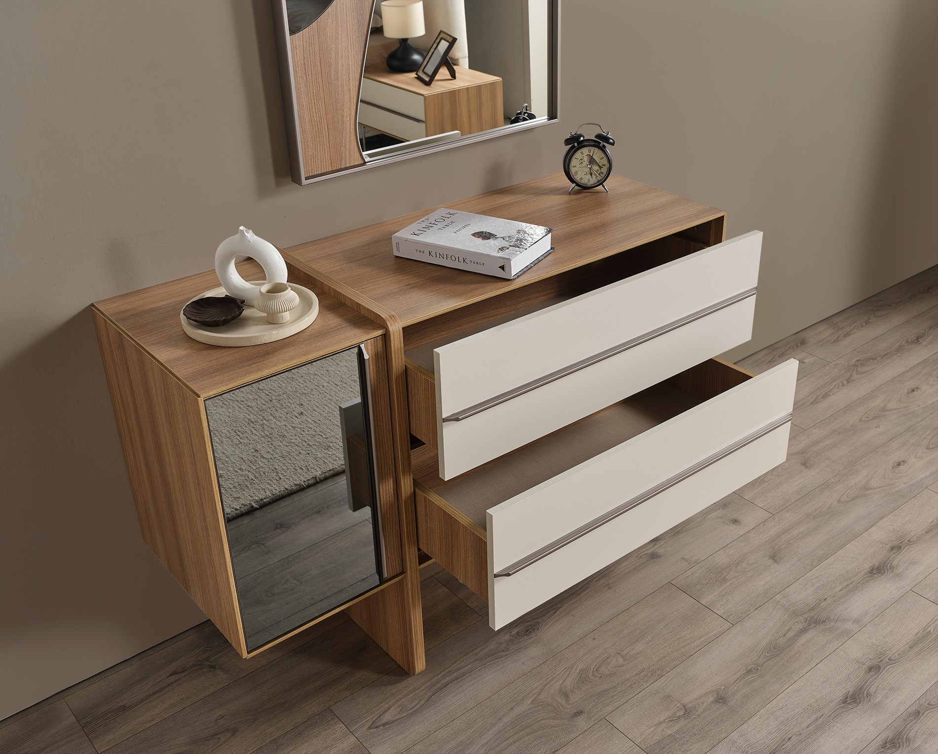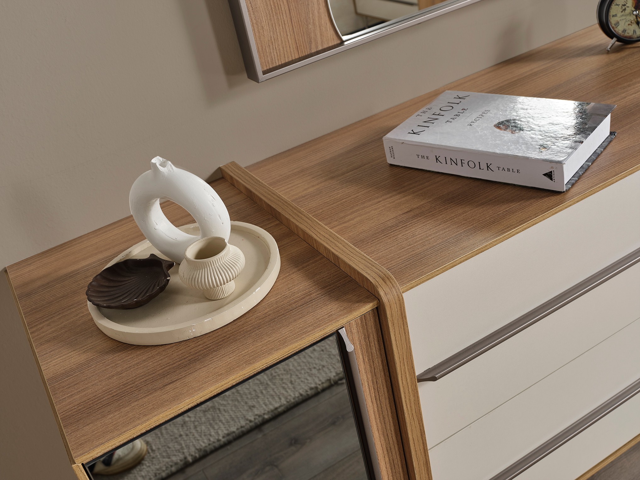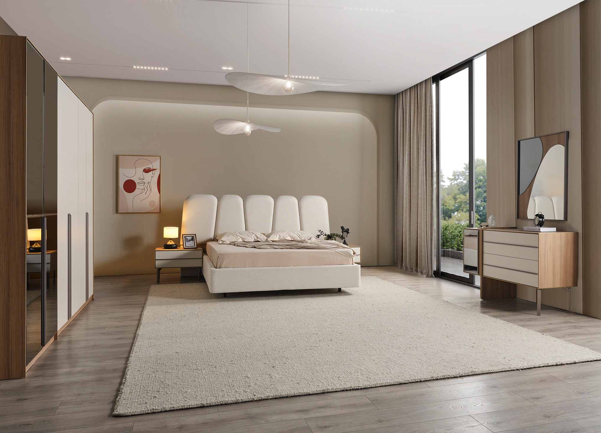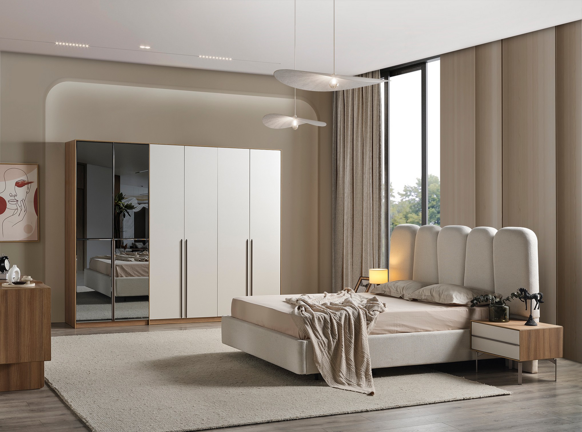 Bodrum Yatak Odası, Ege esintilerinden ilham alan tasarımıyla ferah ve huzurlu bir atmosfer sunar. Açık renk tonları ve doğal detayları, odanıza aydınlık ve rahatlatıcı bir görünüm kazandırır. Fonksiyonel depolama alanları ve kaliteli malzemeleriyle konforlu bir kullanım sağlar. Tatil havasını evine taşımak isteyenler için ideal bir yatak odası seçeneğidir.