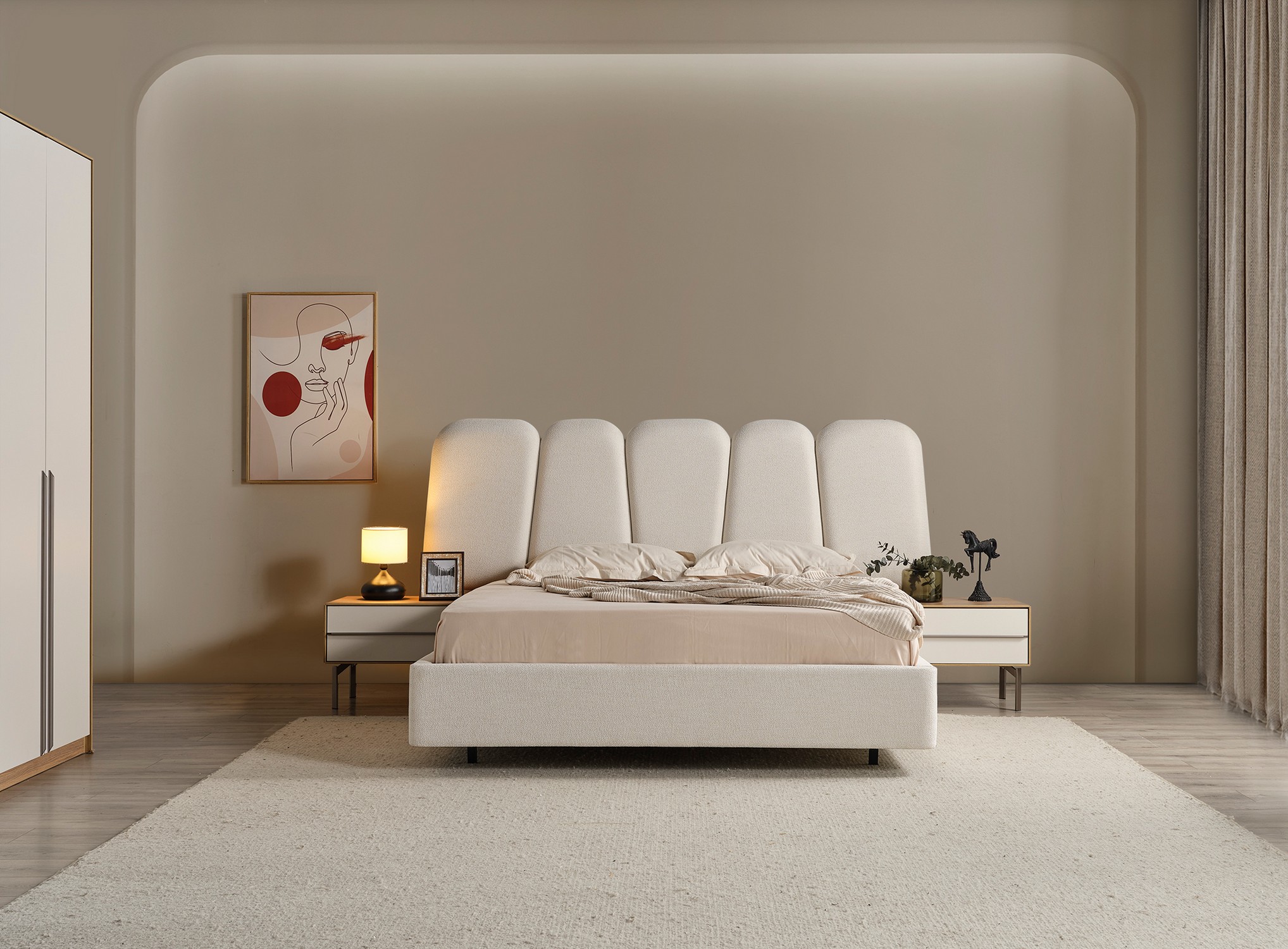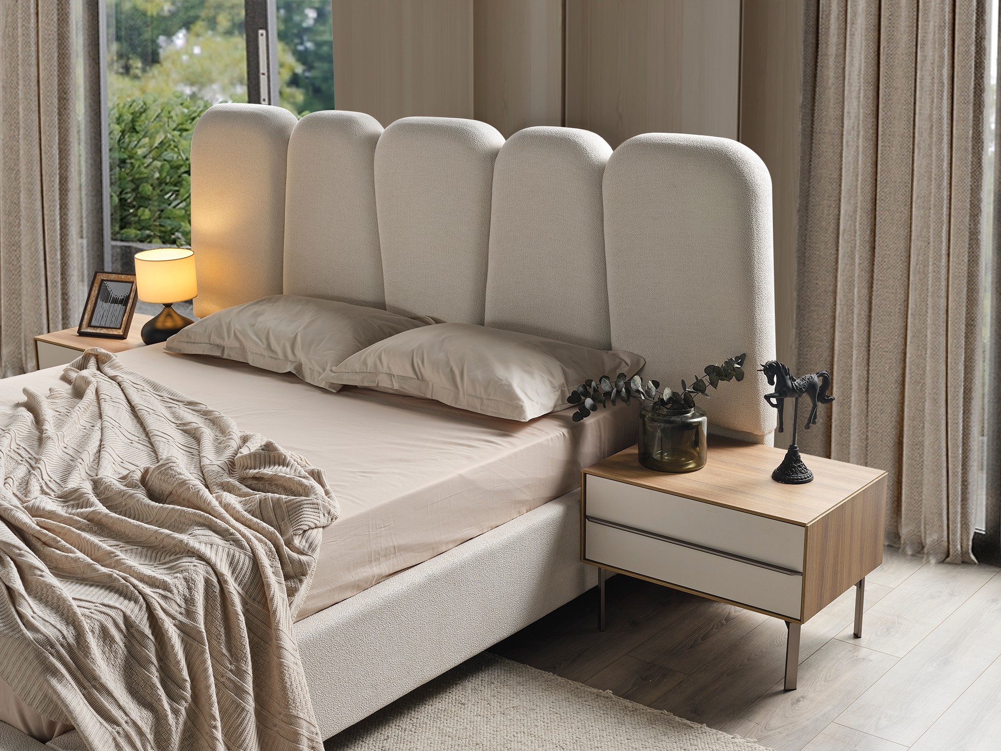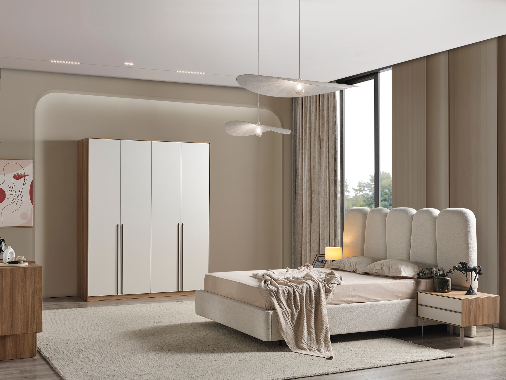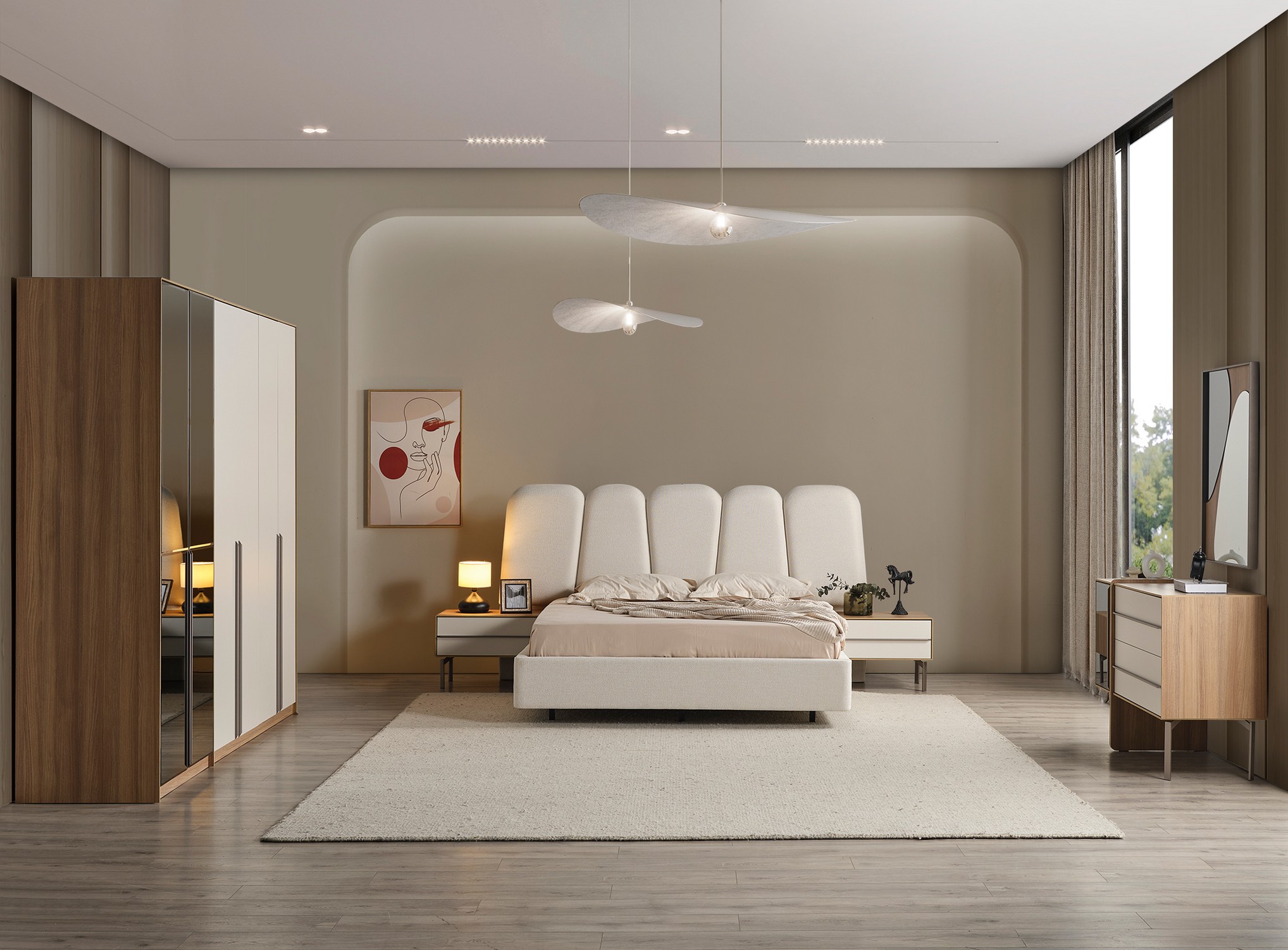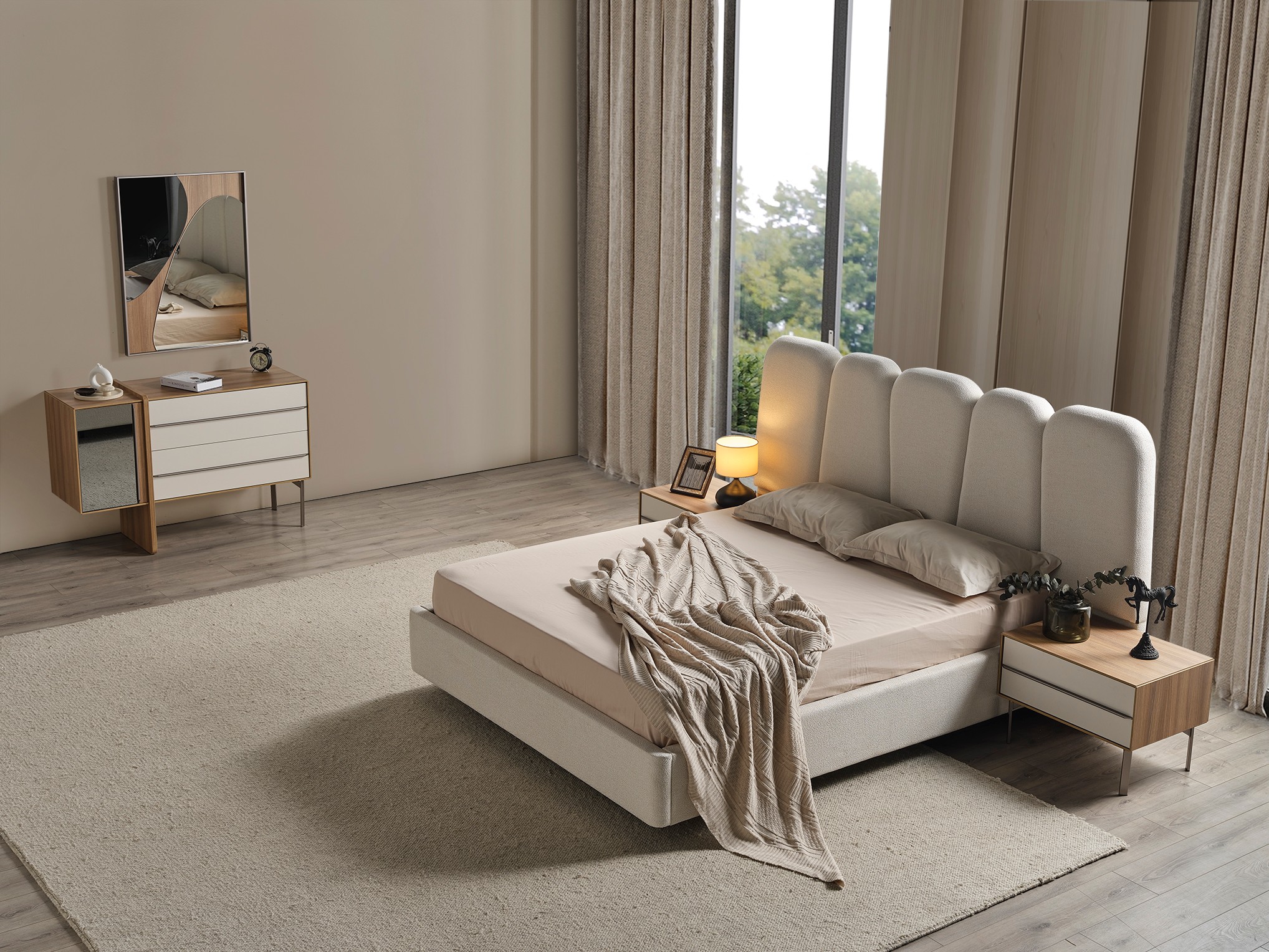 Bonita Yatak Odası, modern tasarımı sıcak ve zarif detaylarla buluşturarak davetkâr bir atmosfer oluşturur. Yumuşak renk geçişleri ve akıcı çizgileri, odanıza ferah ve estetik bir görünüm kazandırır. Fonksiyonel dolap ve şık tamamlayıcı parçalarıyla hem konfor hem de kullanım kolaylığı sunar. Rahatlığı ve şıklığı bir arada isteyenler için ideal bir tercihtir.