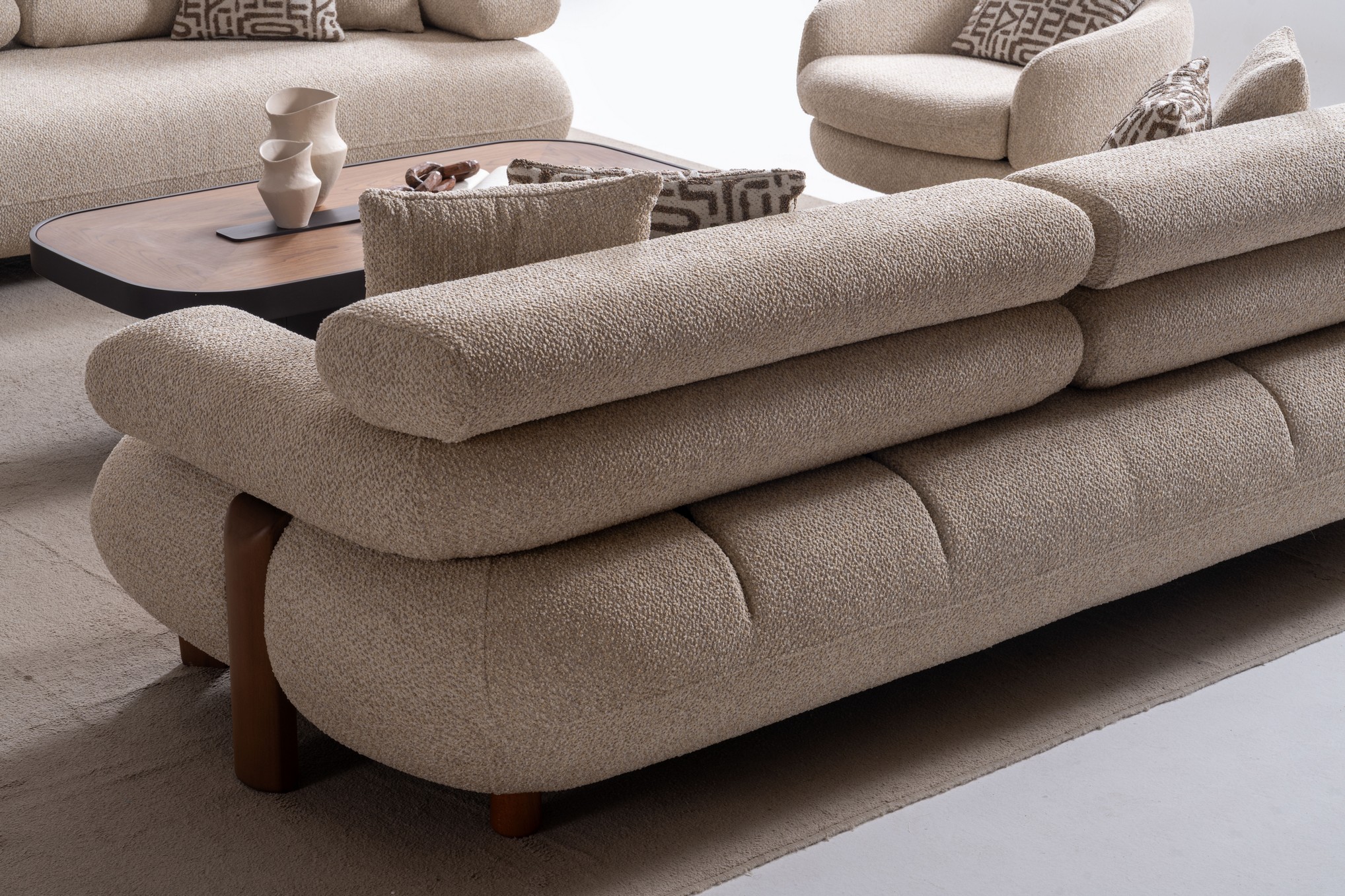 Roma Koltuk Takımı, klasik zarafeti modern çizgilerle buluşturarak oturma alanınıza sıcak ve sofistike bir hava kazandırır. Konfor odaklı ergonomik minderleri sayesinde uzun süreli oturmalarda bile rahat bir kullanım sağlar. Uyumlu renk tonları ve estetik yüzey detayları, salonunuza davetkâr ve şık bir atmosfer sunar. Hem geleneksel dokunuşları hem de modern stili bir arada arayanlar için ideal bir koltuk takımı tercihidir.