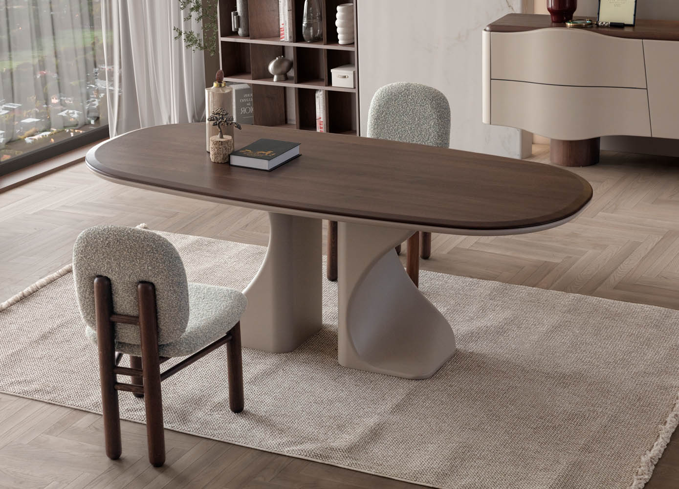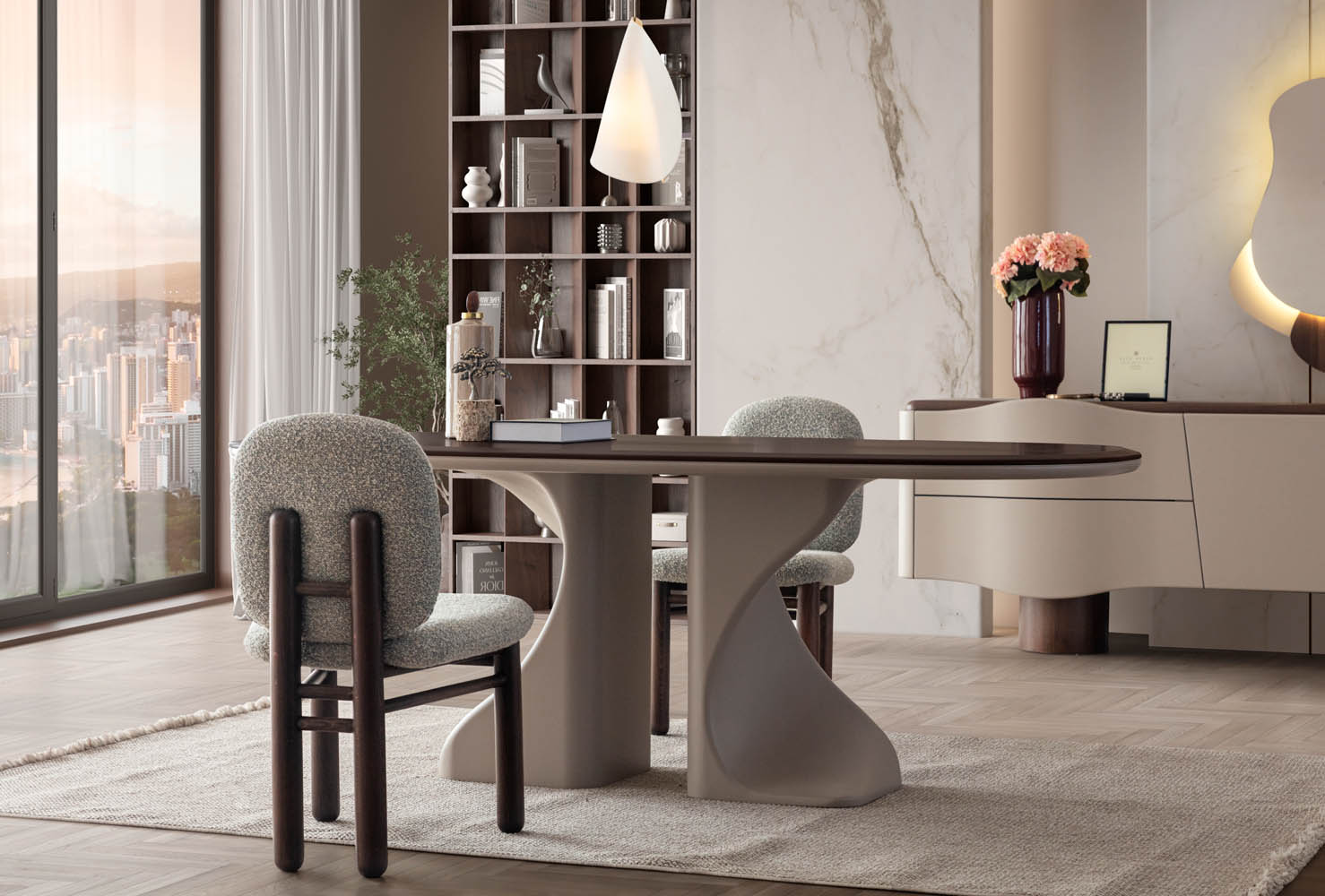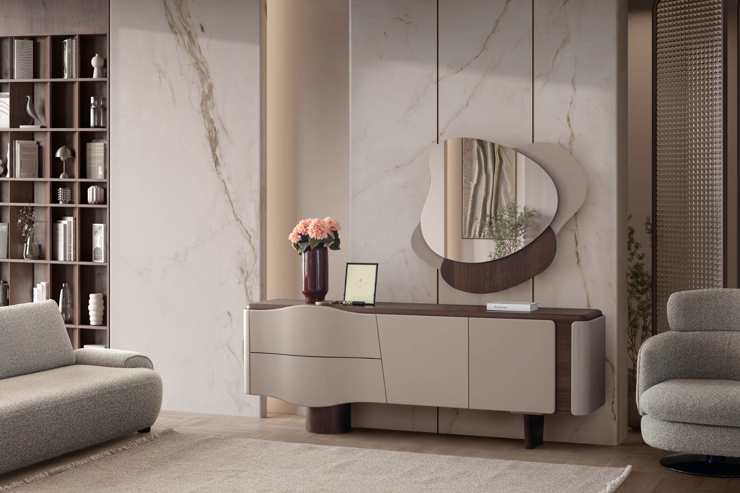Romeo Yemek Odası, romantik çizgileri modern detaylarla harmanlayarak zarif ve etkileyici bir yaşam alanı sunar. Yumuşak renk geçişleri ve özenli işçiliği, yemek saatlerine sıcak ve huzurlu bir atmosfer katar. Hem estetik hem de konfor arayanlar için ideal bir seçimdir.