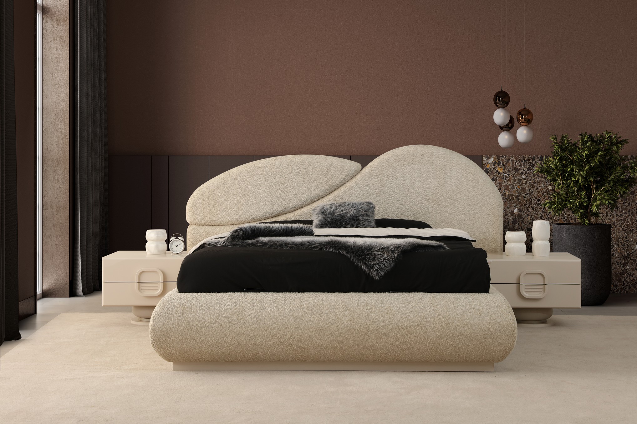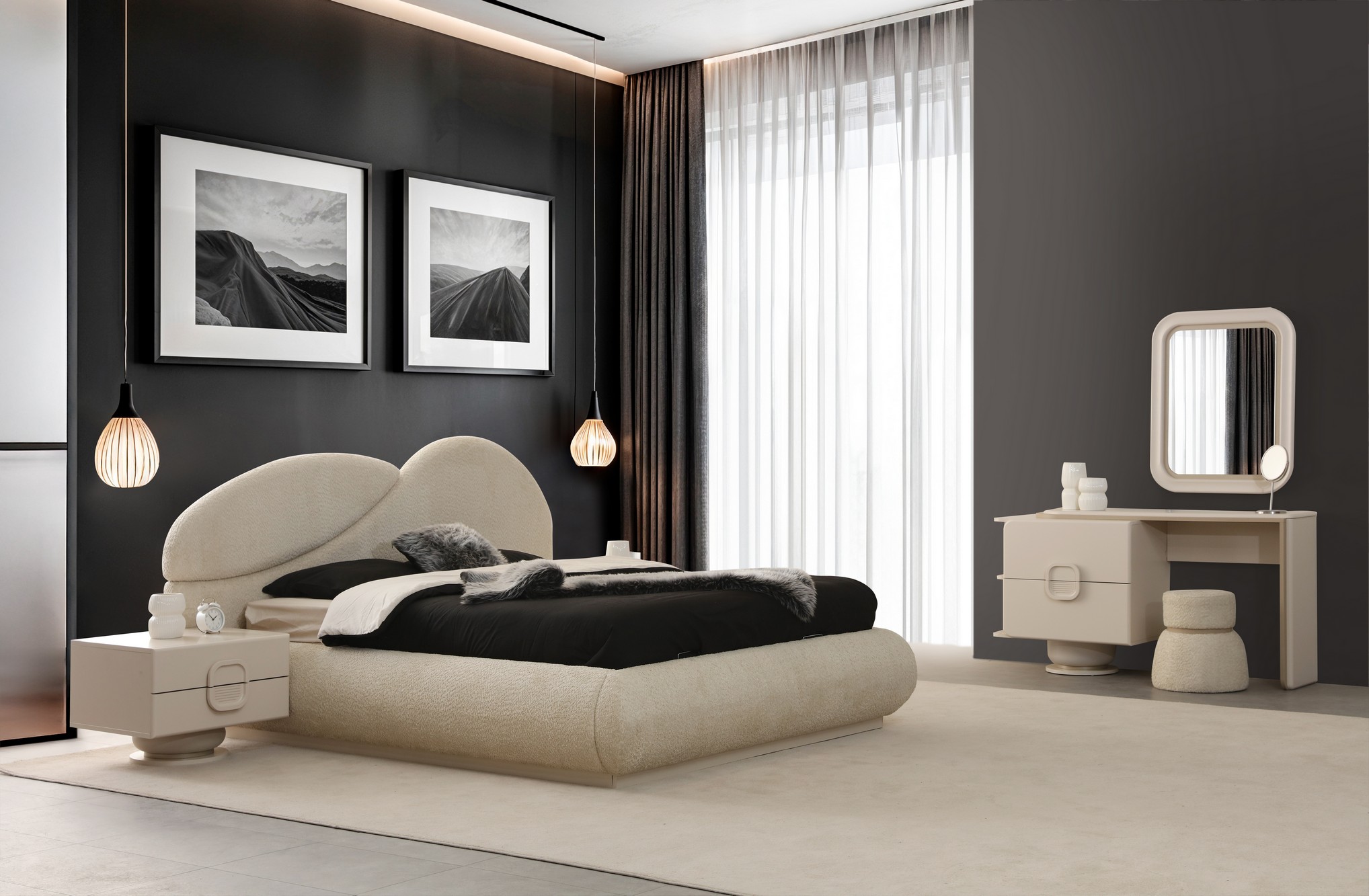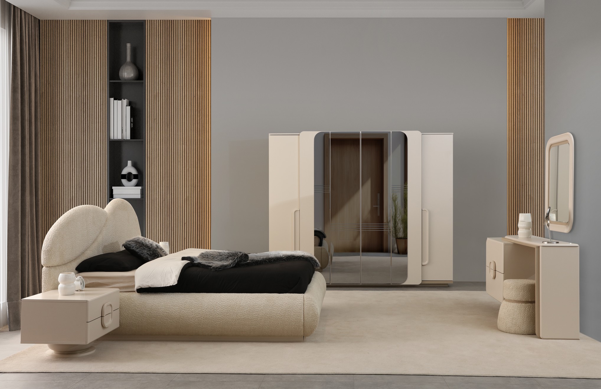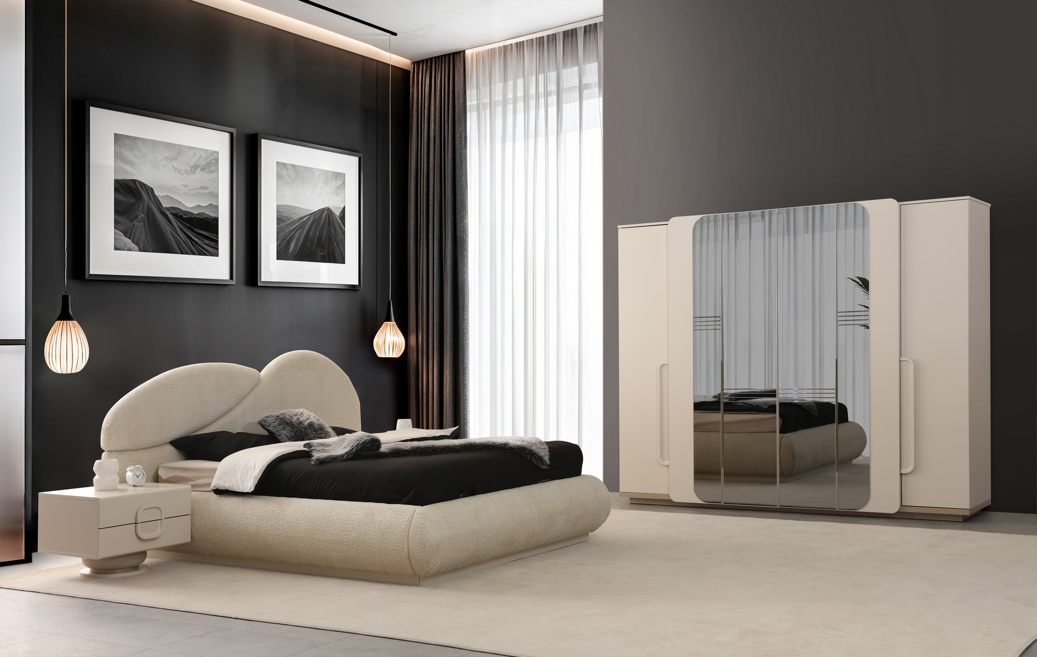 Asya Yatak Odası, sakin ve dengeli tasarım anlayışıyla huzurlu bir uyku alanı sunar. Doğal tonlar ve yumuşak geçişler, odanıza ferah ve sıcak bir atmosfer kazandırır. Fonksiyonel depolama çözümleri ve kaliteli malzemeleriyle uzun süreli konfor sağlar. Sadeliği ve zarafeti bir arada arayanlar için ideal bir tercihtir.