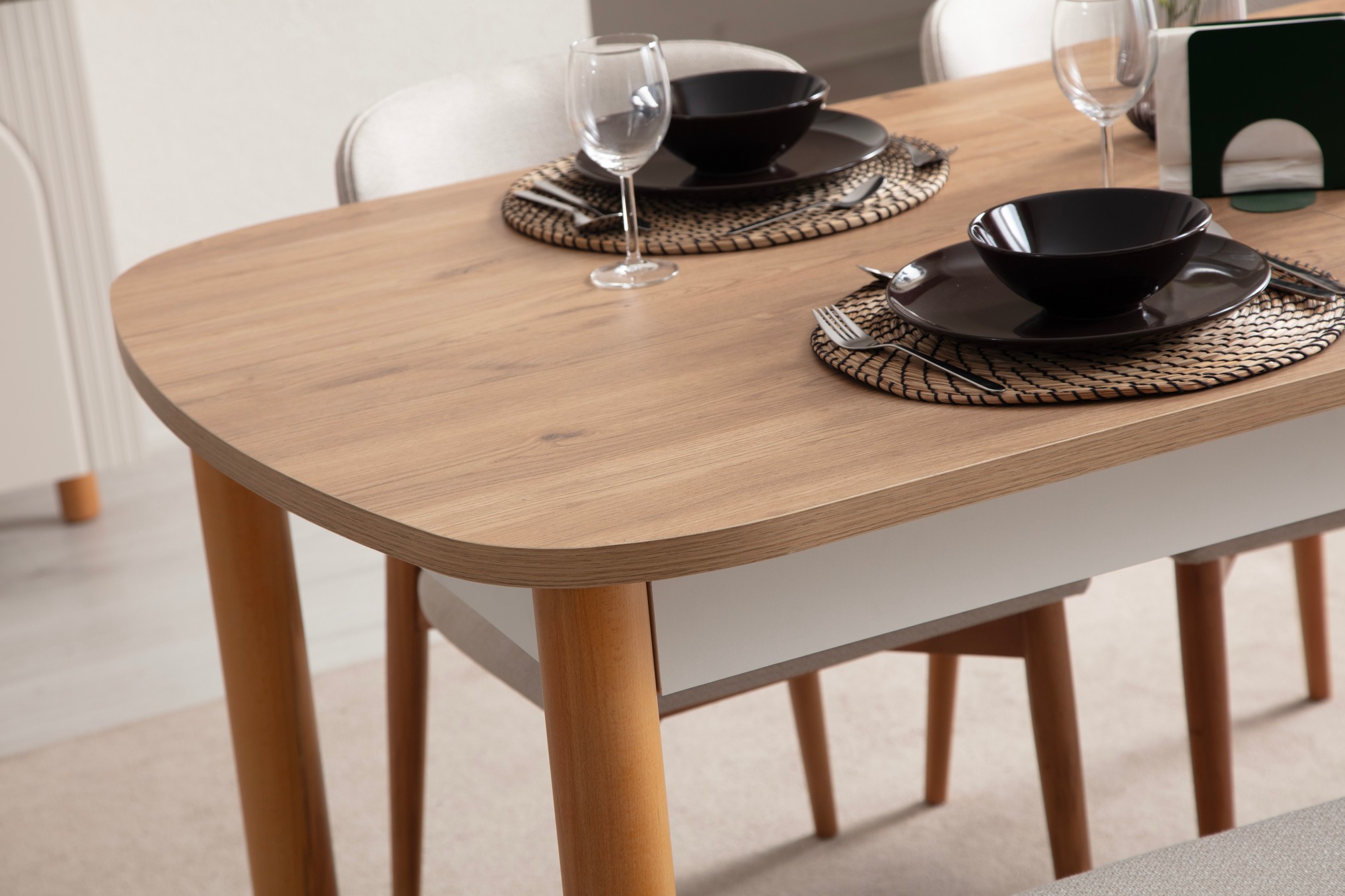 Ada Meşe Yemek Odası, meşe dokusunun doğal sıcaklığını modern tasarım çizgileriyle buluşturuyor. Zamansız görünümü, mekâna sade ama etkileyici bir hava katıyor. Dayanıklı yapısı ve estetik detaylarıyla hem günlük kullanımda hem de özel davetlerde öne çıkıyor. Sofralarınıza huzurlu, samimi ve şık bir atmosfer getiriyor. Ada Meşe ile yemek odanız, evinizde doğallığın en zarif halini yansıtıyor.