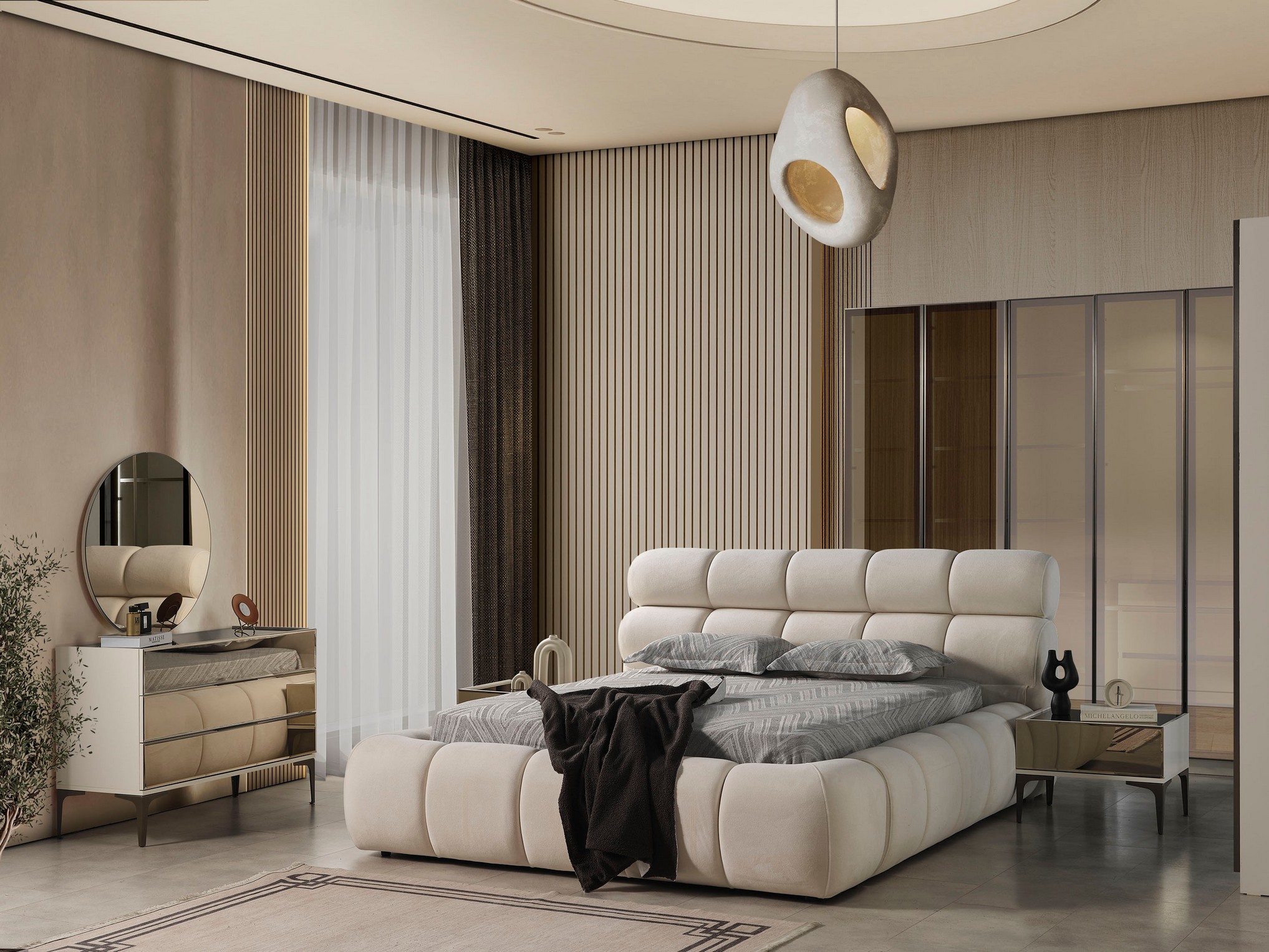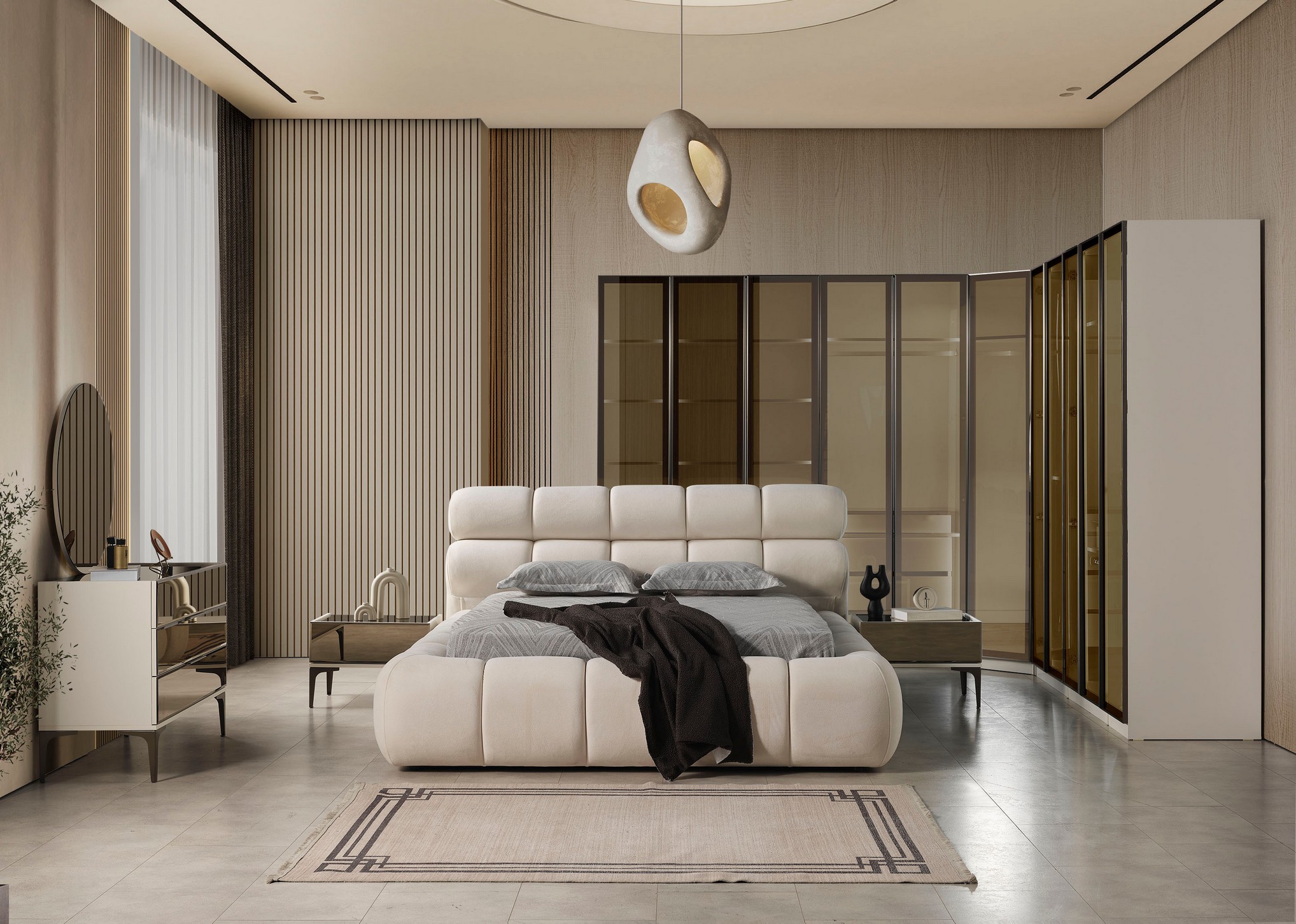 Bien Yatak Odası, modern çizgileri sade ve zarif detaylarla birleştirerek huzurlu bir uyku alanı oluşturur. Yumuşak renk tonları ve dengeli tasarımı, odanıza ferah ve sıcak bir atmosfer kazandırır. Fonksiyonel depolama alanları ve kaliteli malzemeleriyle uzun yıllar konforlu kullanım sunar. Sade şıklığı sevenler için ideal bir seçimdir.