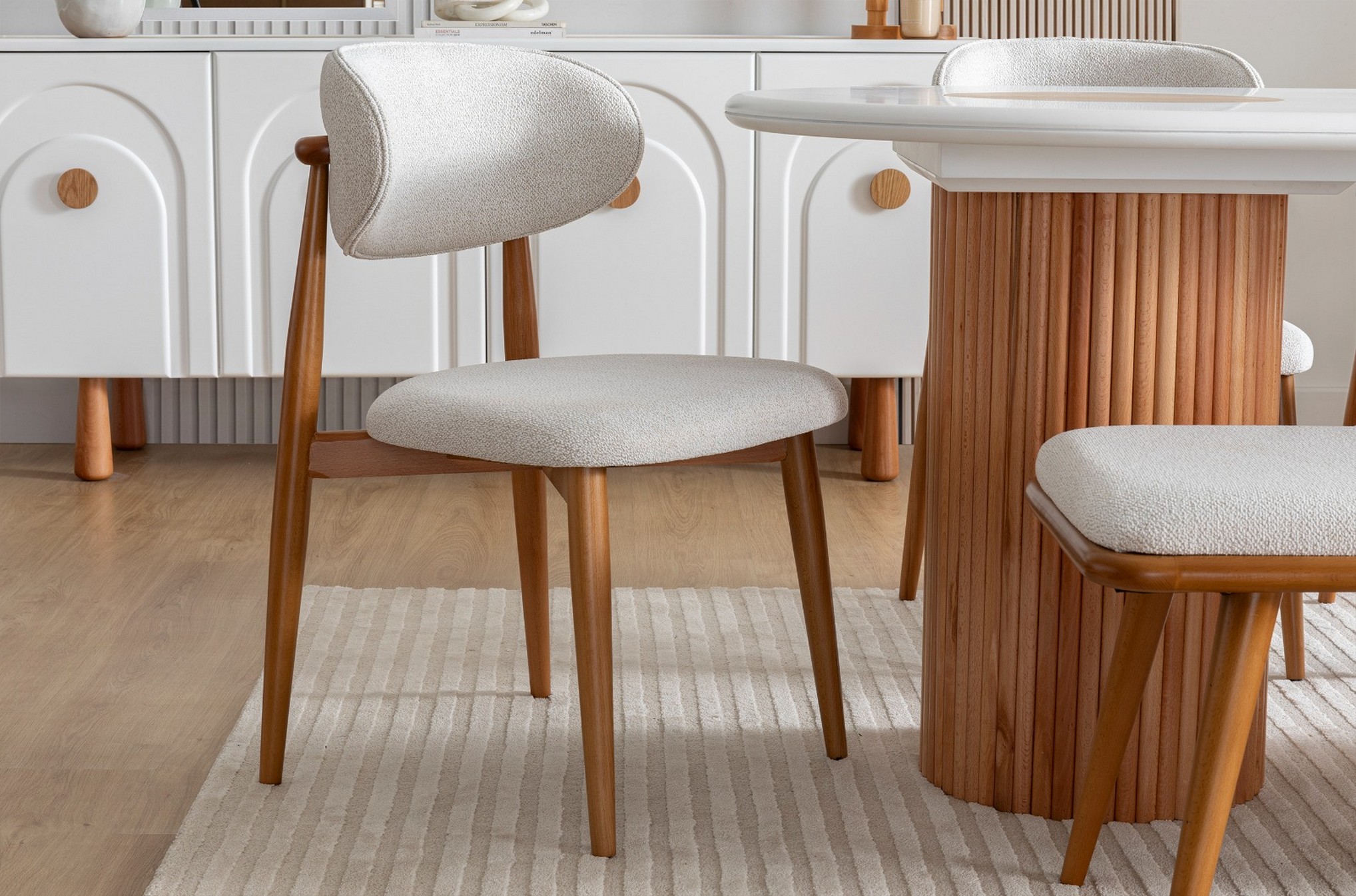 Soho Yemek Odası, modern şehir tarzını zarif detaylarla birleştirerek güçlü bir tasarım sunar. Minimal çizgileri ve uyumlu renk dokusu, mekâna sofistike bir atmosfer kazandırır. Fonksiyonel depolama alanları ve kaliteli işçiliği sayesinde hem estetik hem de uzun ömürlü bir kullanım sağlar. Şehirli ve modern bir stil arayanlar için ideal bir seçimdir.