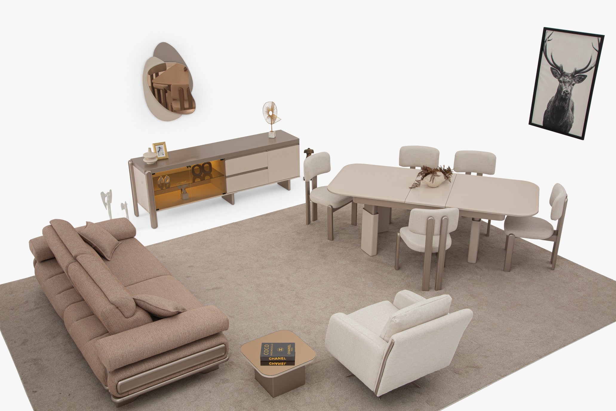 Minimal şıklığı modern dokunuşlarla harmanlayan Stella Yemek Odası, yaşam alanınıza ferah ve zarif bir atmosfer getirir. Kullanım kolaylığı ve estetik detaylarıyla her yemek buluşmasını keyifli kılar.