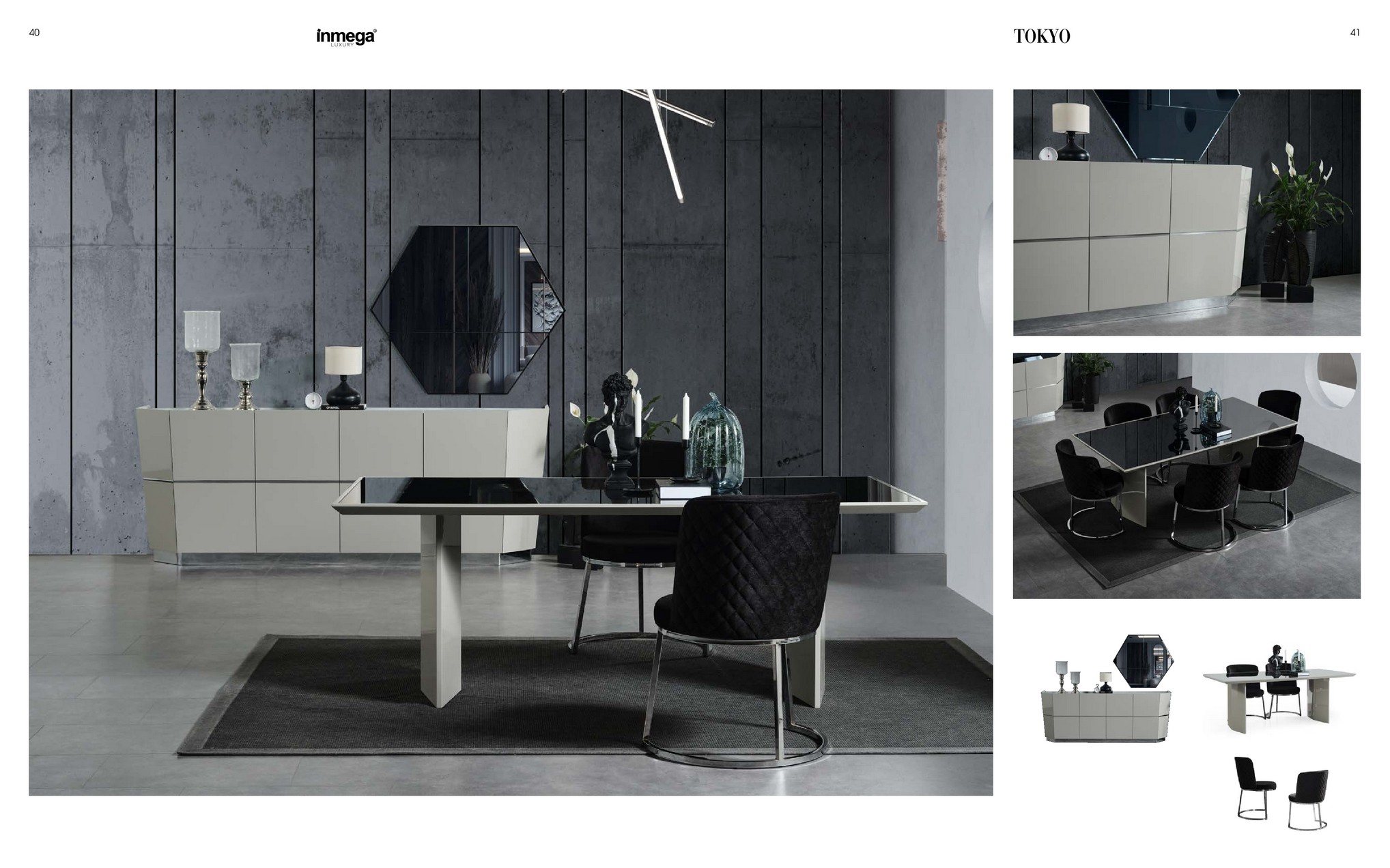 Tokyo Yemek Odası, modern şehrin enerjisini evinize taşır. Minimalist çizgileri ve zarif detayları, sofralarınızı adeta bir tasarım galerisine dönüştürür. Sade ama etkileyici duruşu, her daveti özel ve unutulmaz kılar. Mekânınıza çağdaş bir dokunuş ve sofistike bir ruh kazandırır.