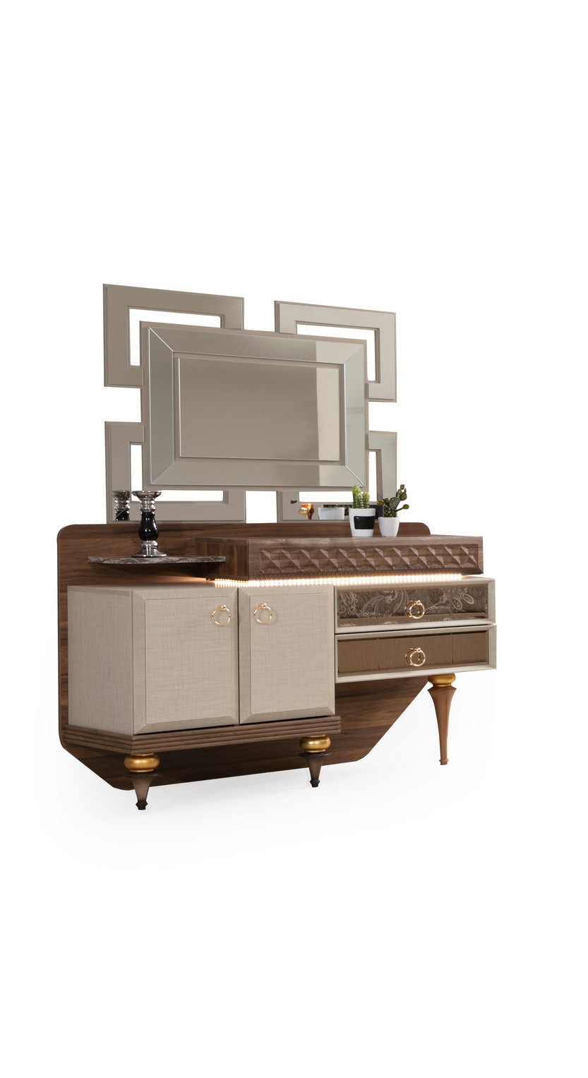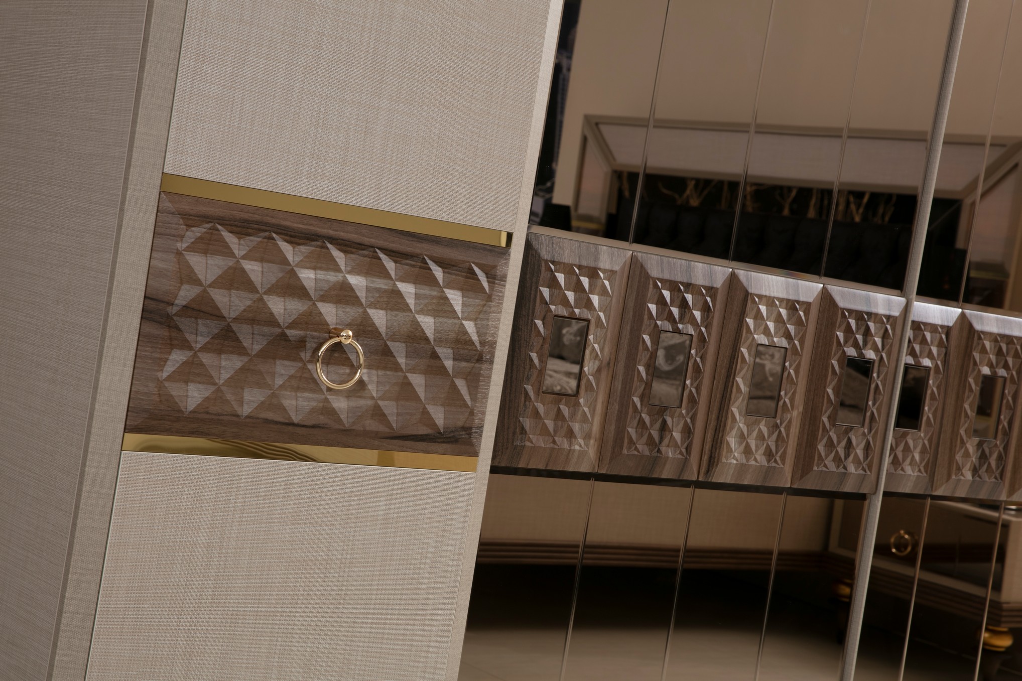 Topkapı Yatak Odası, klasik izler taşıyan zarif tasarımıyla odanıza sofistike ve prestijli bir hava kazandırır. İnce detaylarla zenginleştirilmiş çizgileri, yaşam alanınıza şık ve dengeli bir görünüm sunar. Fonksiyonel depolama çözümleri ve kaliteli malzemeleriyle konforlu ve uzun ömürlü bir kullanım sağlar. Hem gösterişli hem de estetik bir uyku alanı arayanlar için ideal bir yatak odası tercihidir.